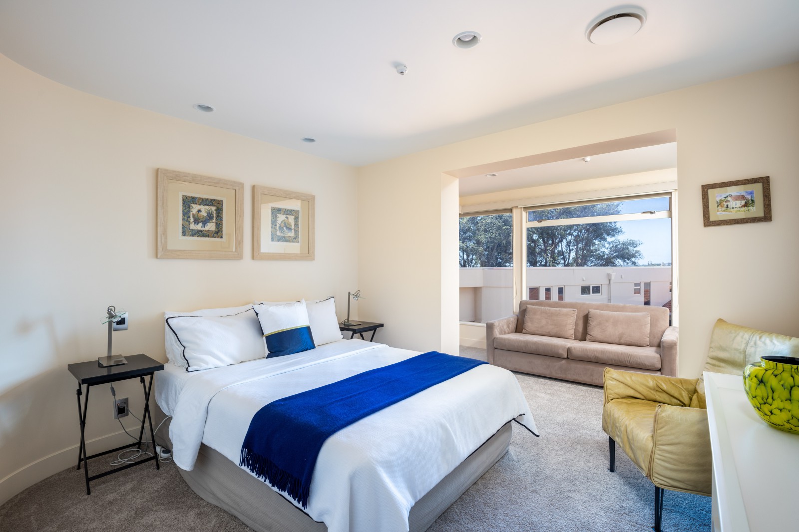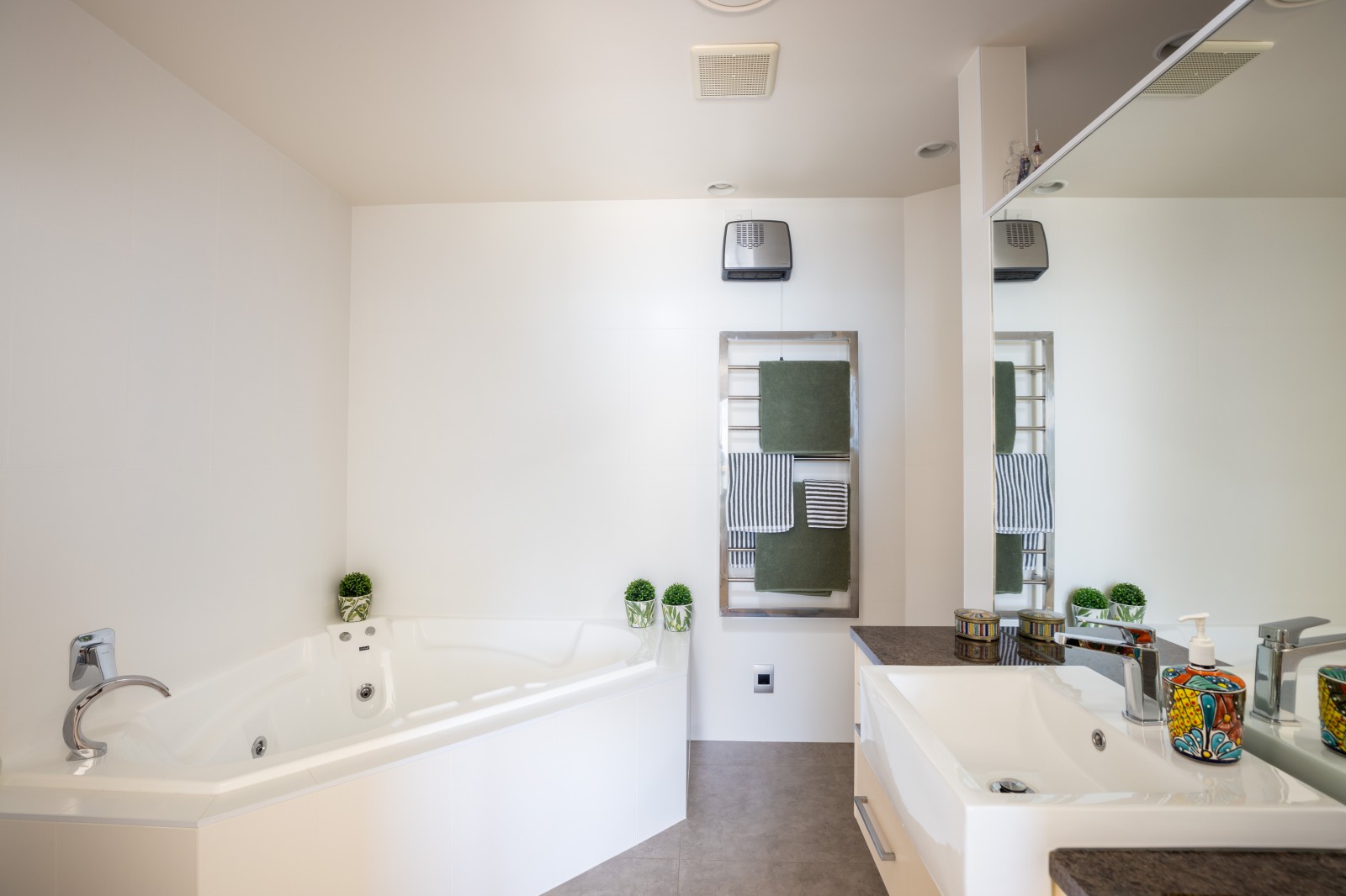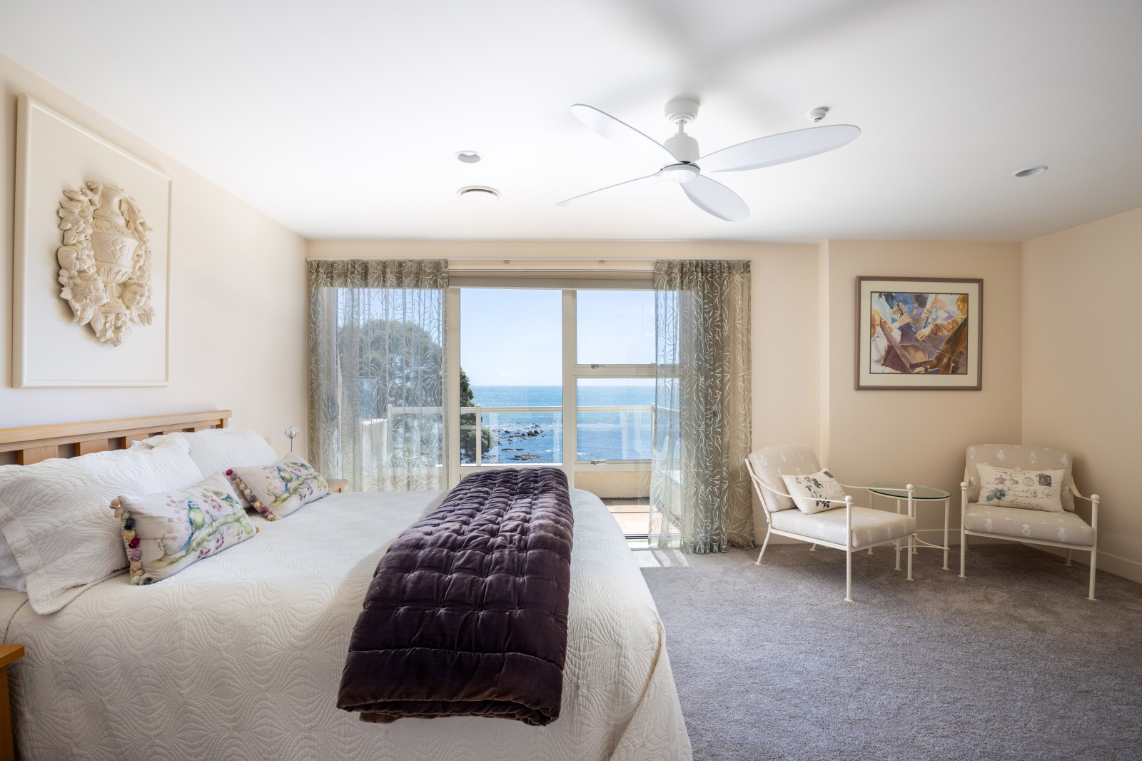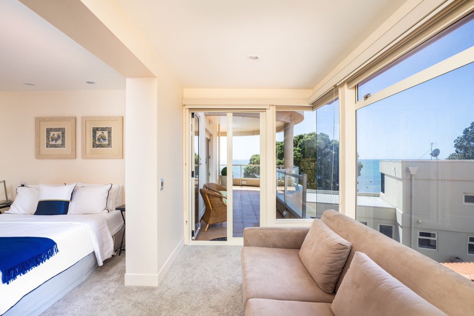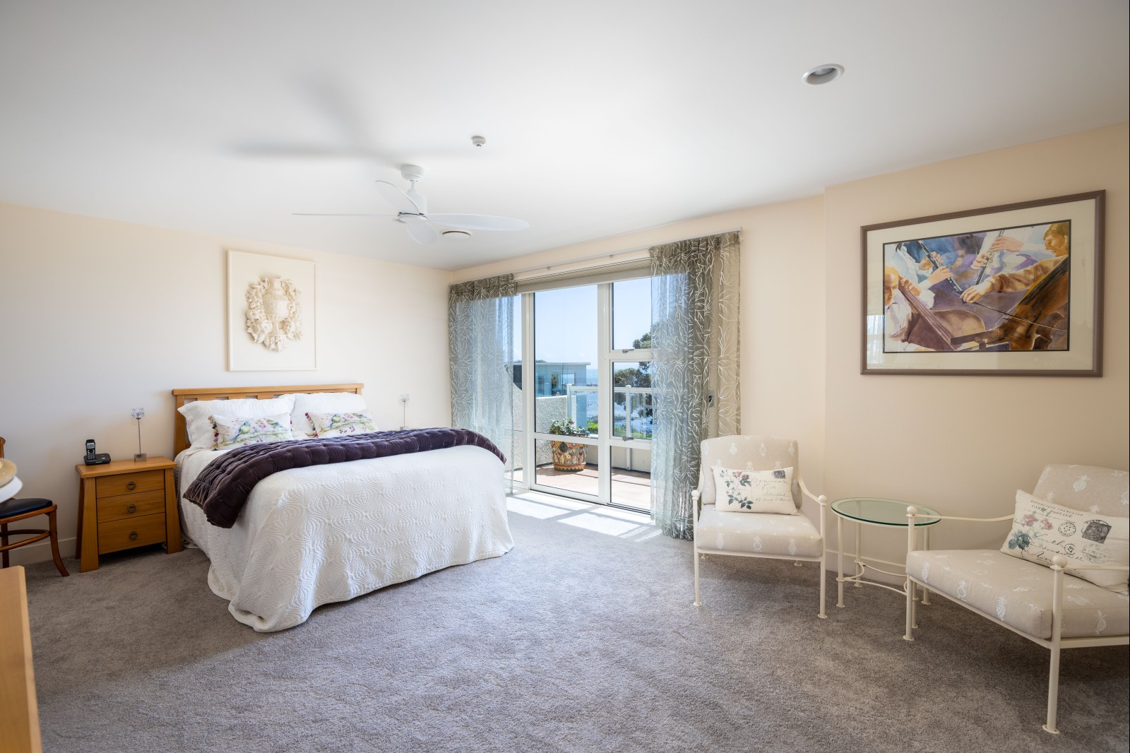 The master suite boasts its own deck with breathtaking sea views, an indulgent ensuite with spa bath, underfloor heating and walk in wardrobe, ensuring privacy and relaxation.