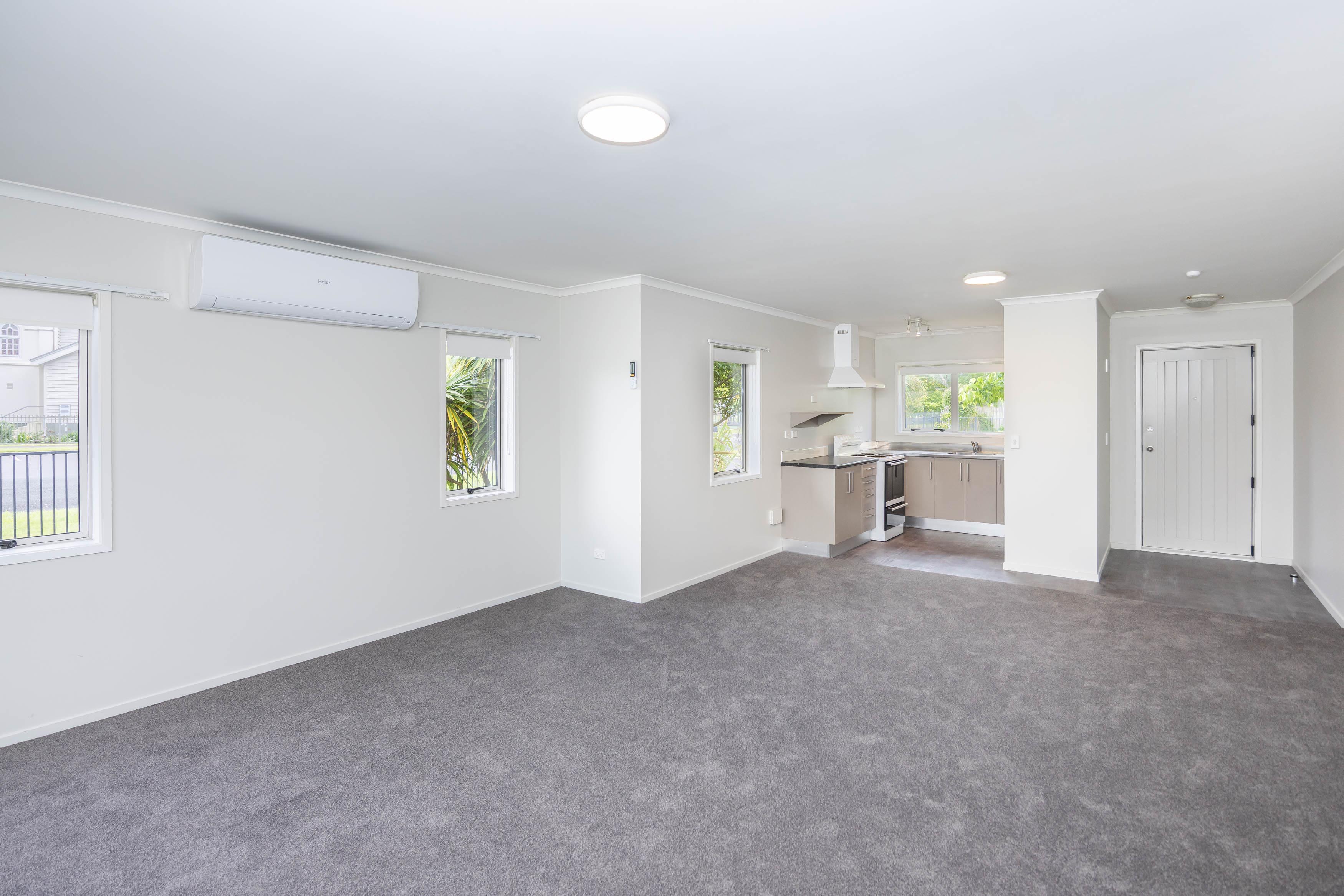 The unit has an open plan kitchen, lounge and dining area, which opens out onto a deck at the back, where you can soak up the sun, in a private backyard and during the winter months keep cozy and warm with the heat pump and the wall heater panel.