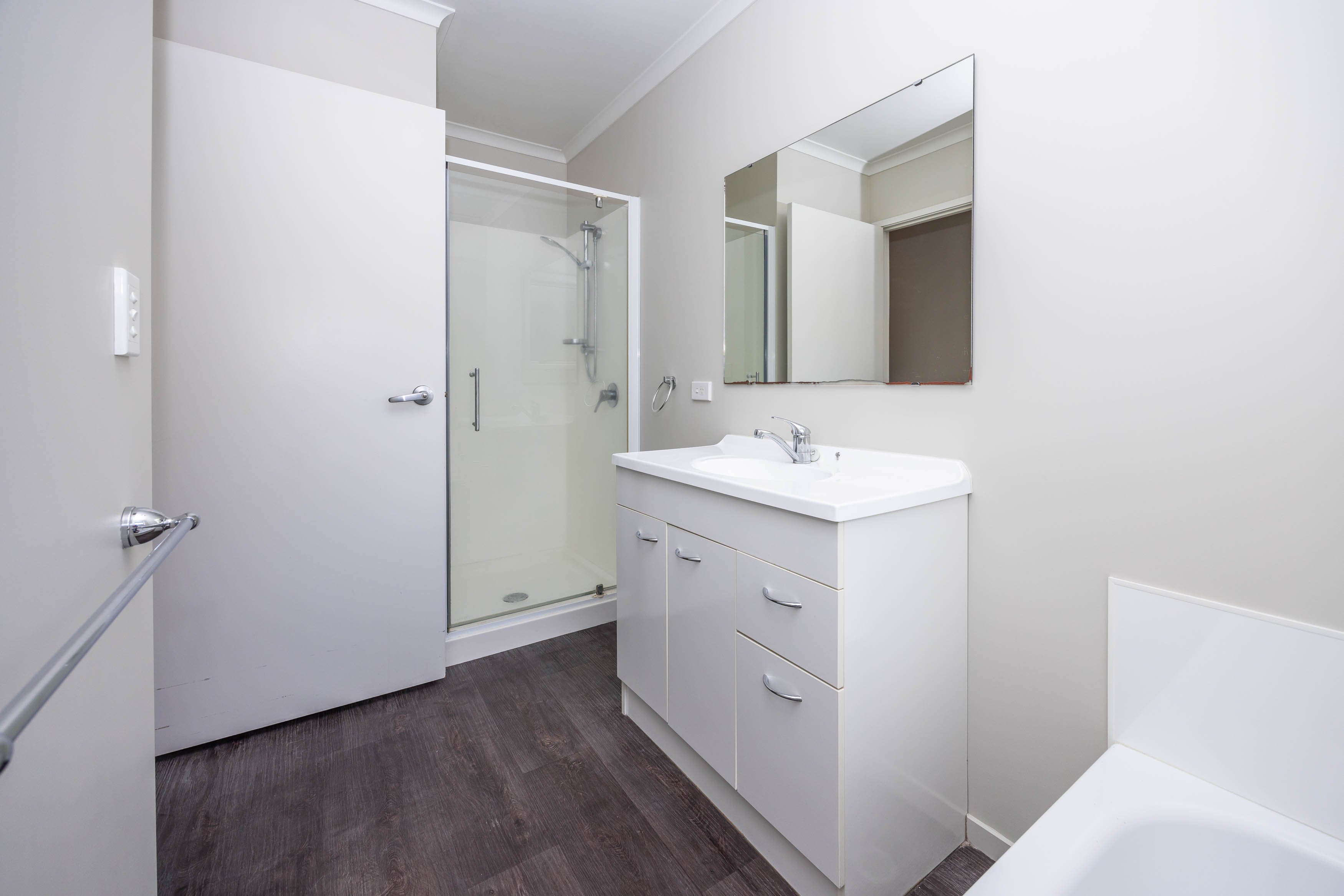 The two bedrooms have built in wardrobes, and the bathroom has a shower and a bath., with a separate toilet. There is a single garage with internal access, with the laundry situated at the back of the garage.