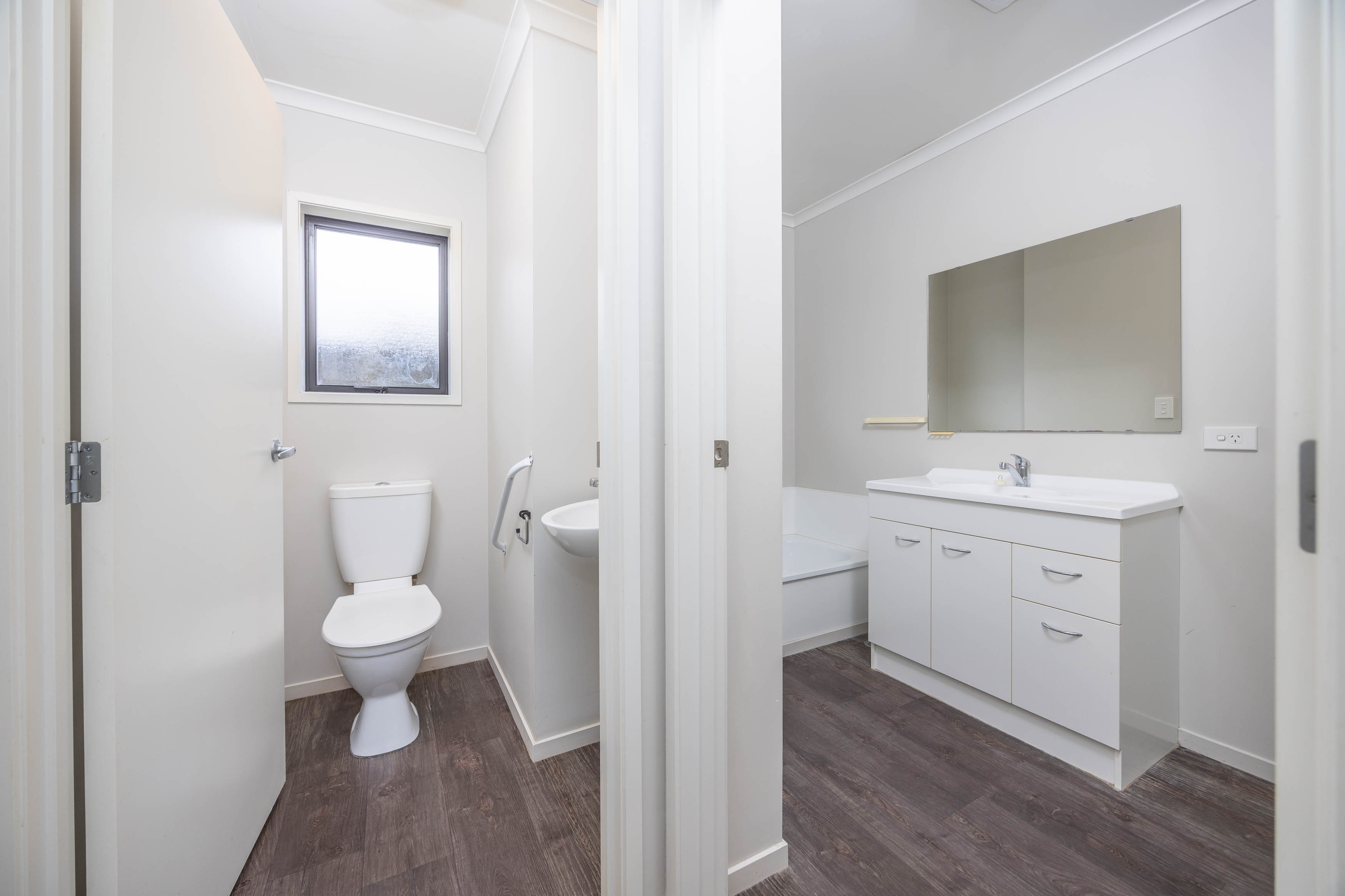 The unit has an open plan kitchen, lounge and dining area, which opens out onto a deck in the backyard, which is the largest section out of all the five units. Soak up the sun in this private, quiet sunny backyard and during the winter month's, keep warm and cozy with the heat pump and wall heater panel.