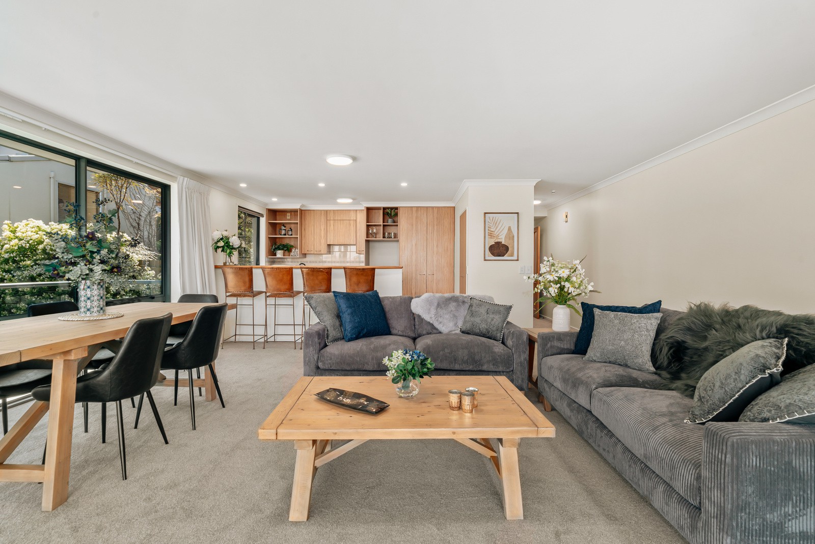 Inside, large windows draw soft natural light into this immaculately presented two-bedroom, one-bathroom corner apartment. The living and dining space is open-plan and airconditioned with a well-equipped kitchen that's ready for the avid chef to cook up a storm.