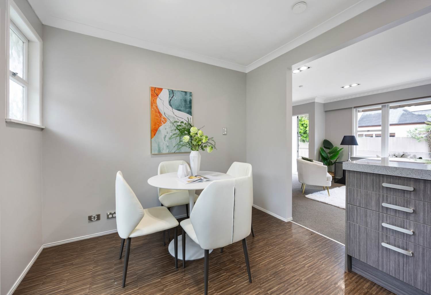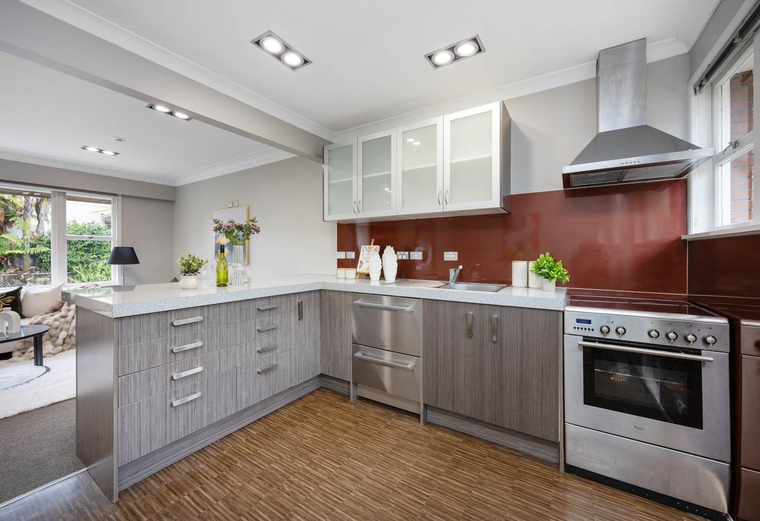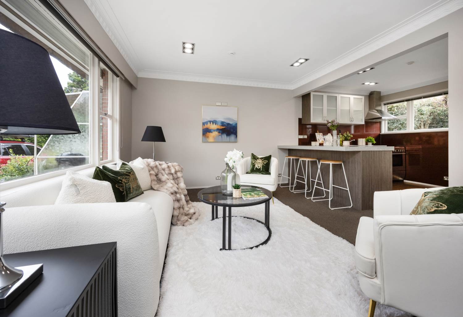thoughtfully styled kitchen that flows to the light sun-filled living area, it is a great