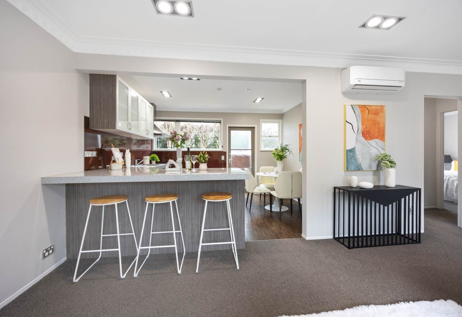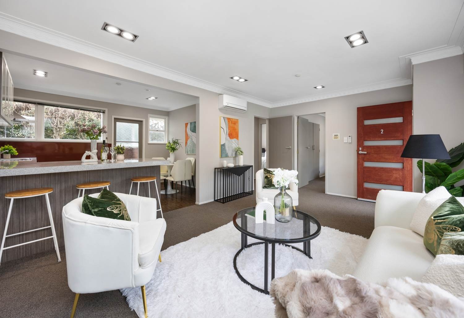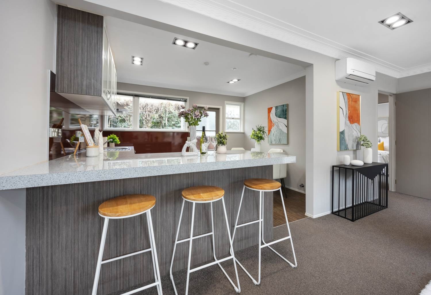 thoughtfully styled kitchen that flows to the light sun-filled living area, it is a great