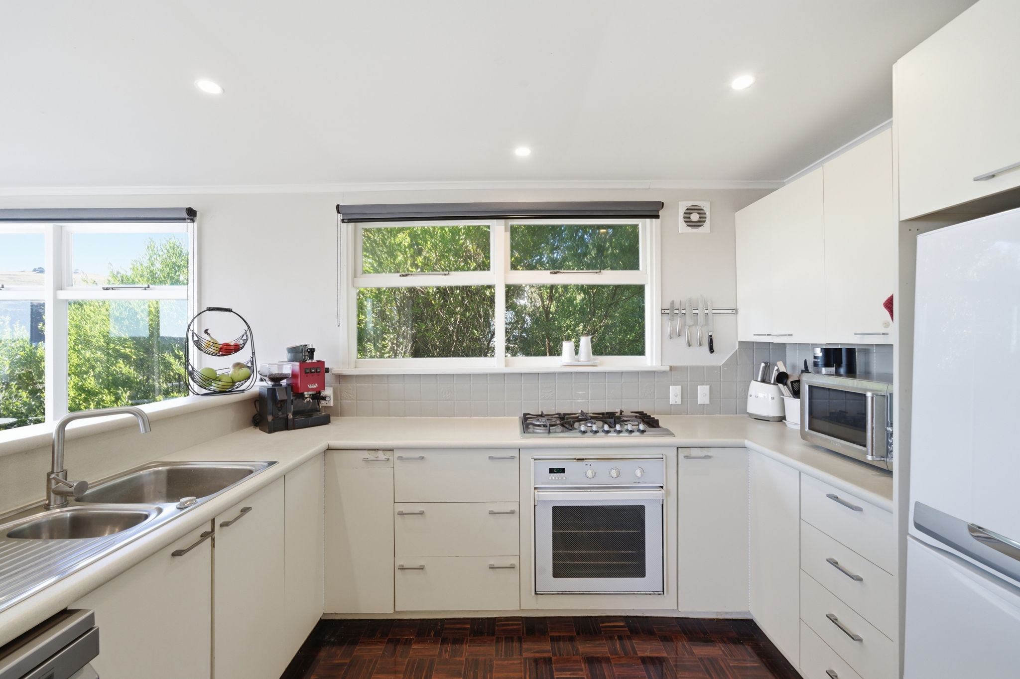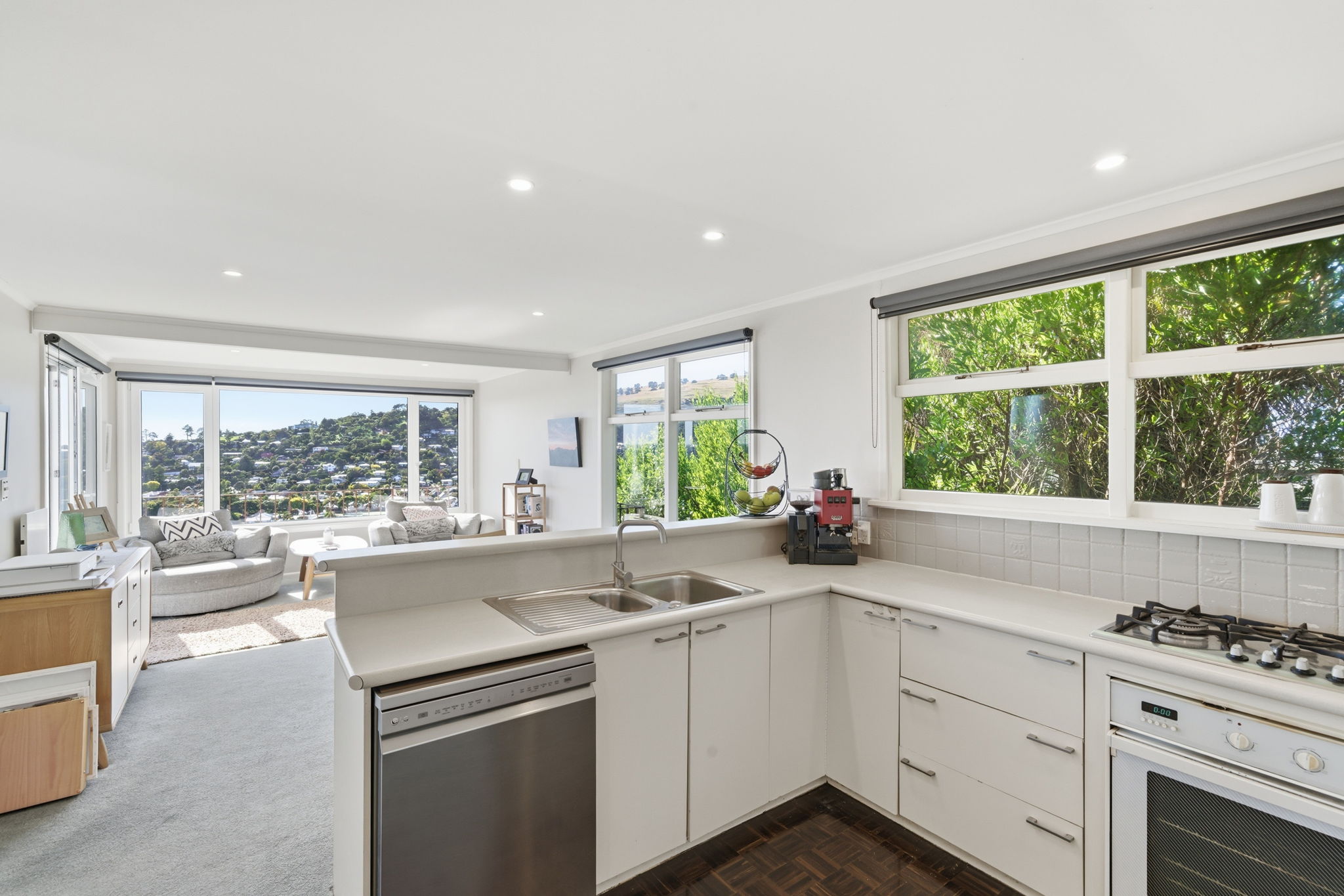 Bathed in natural sunlight, the open-plan kitchen, living, and dining area forms the heart of the home and opens seamlessly onto an impressive wrap-around deck. Designed to capture all-day sun, this outdoor space is ideal for entertaining, relaxing, or simply enjoying the outlook.