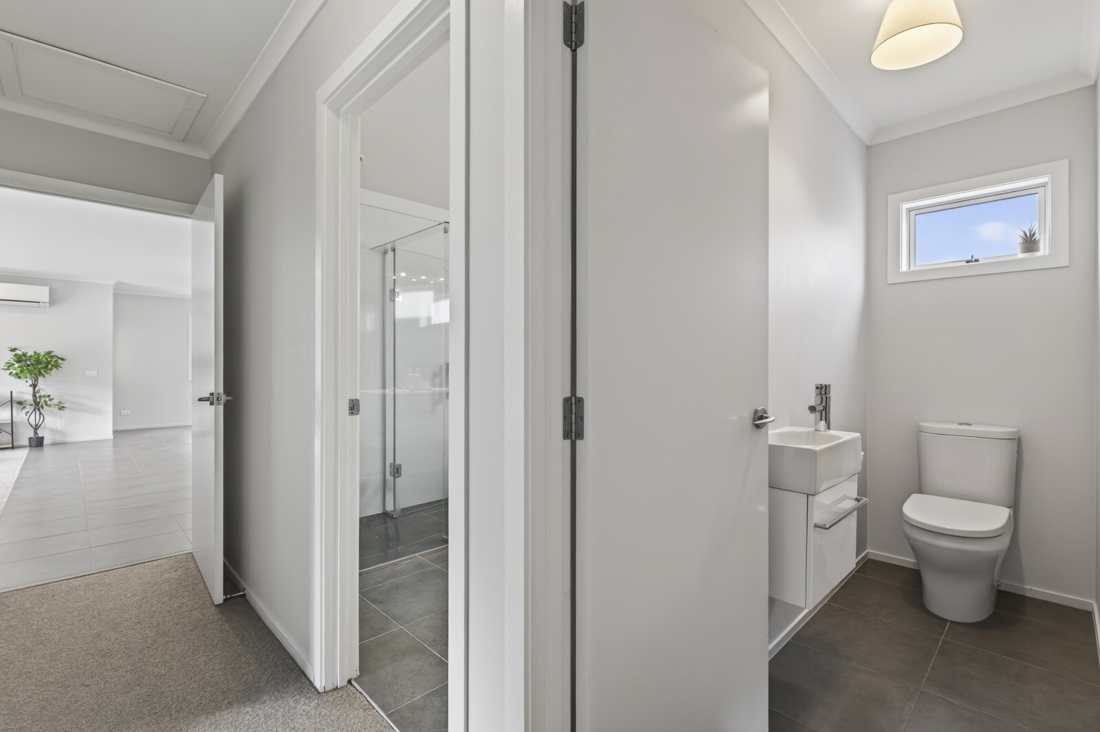 The home features three well sized bedrooms each complete with wardrobes. The family bathroom is thoughtfully designed with a bath, separate shower and double basins, plus the convenience of a separate toilet. At the end of the hallway, just down a few steps, you’ll find the internal access double garage; fully carpeted for added comfort and versatility. There is even a ranchslider in the garage so versatility is prominent.