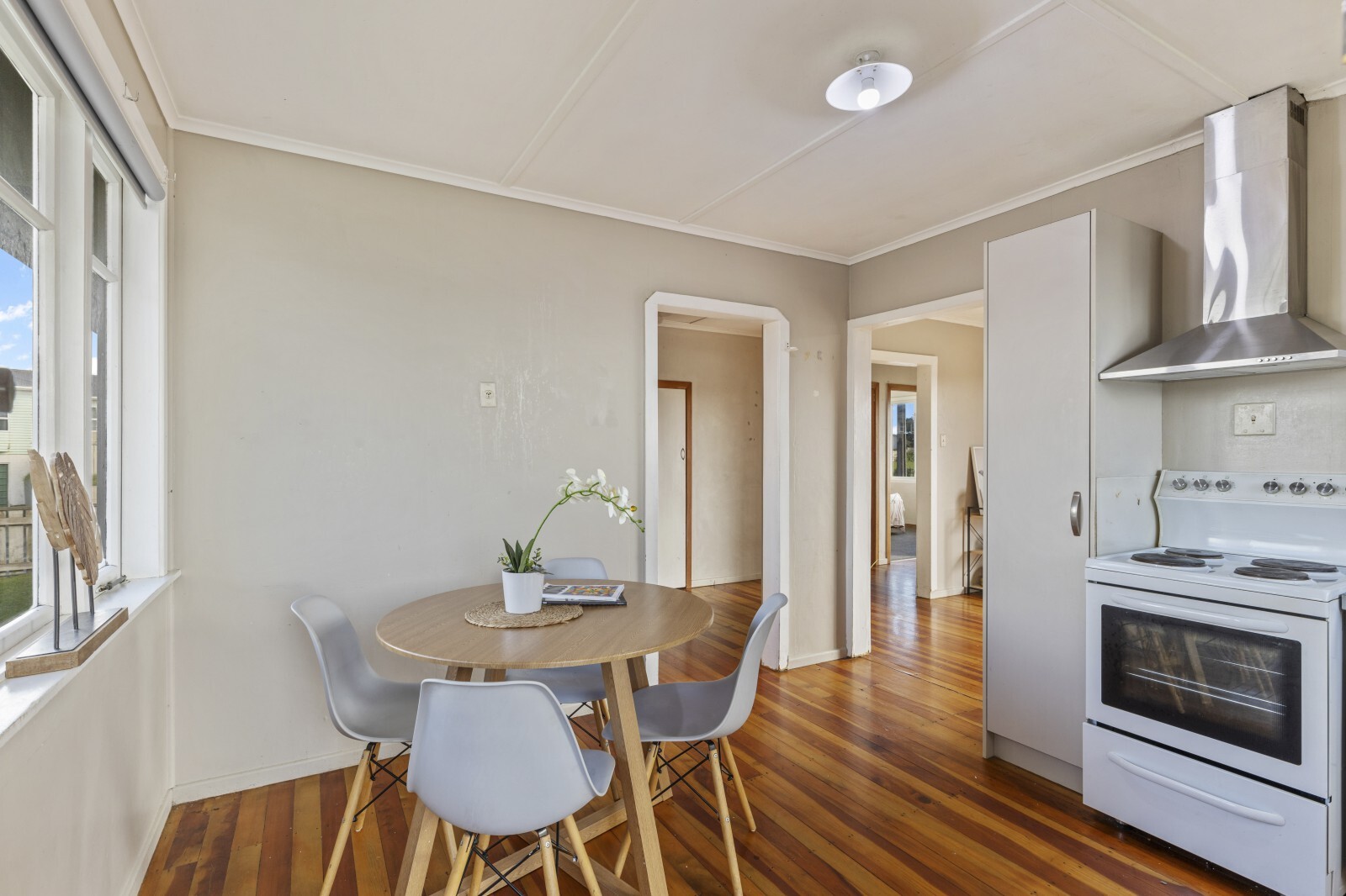 Step inside and you will notice the polished timber floors flowing through the open plan kitchen and dining area, separate lounge, and hallway which brings character to the home. French doors open from the lounge onto a spacious deck, perfect for morning coffees or summer entertaining. All three bedrooms are generously sized and carpeted. The bathroom offers a shower over the bath, vanity, and there's a separate toilet. The laundry is tucked away beyond the kitchen in its own room. Outside, enjoy the generous lawn space for kids or pets to roam on the fenced section, along with a single external access garage and plenty of off street parking.