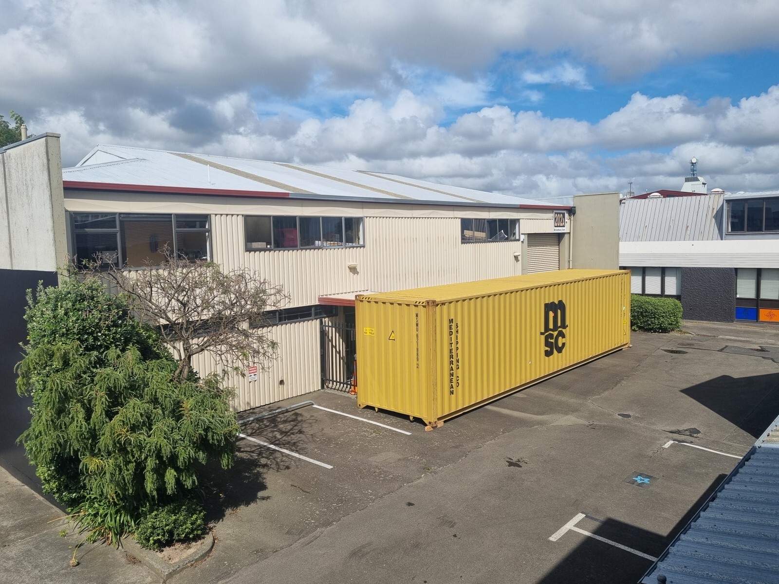 Very central warehouse/workshop located in Broadway. High stud warehouse area approximately 257m2, office and amenities approximately 99m2, mezzanine storage approximately 55m2. 5 dedicated car parks.