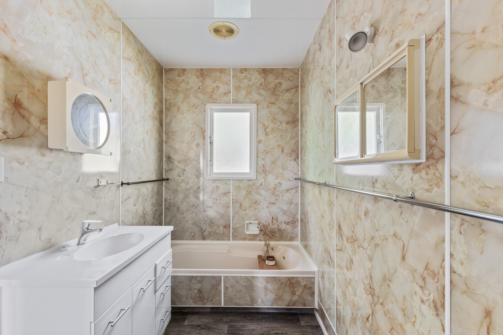 The kitchen is open-plan with the dining, which leads through to the light and spacious lounge. Add in some stacker doors in either the dining or the lounge, and you will have instant indoor/outdoor flow onto the recently built decent-sized deck great for BBQ's and sitting in the sun any time of the year.