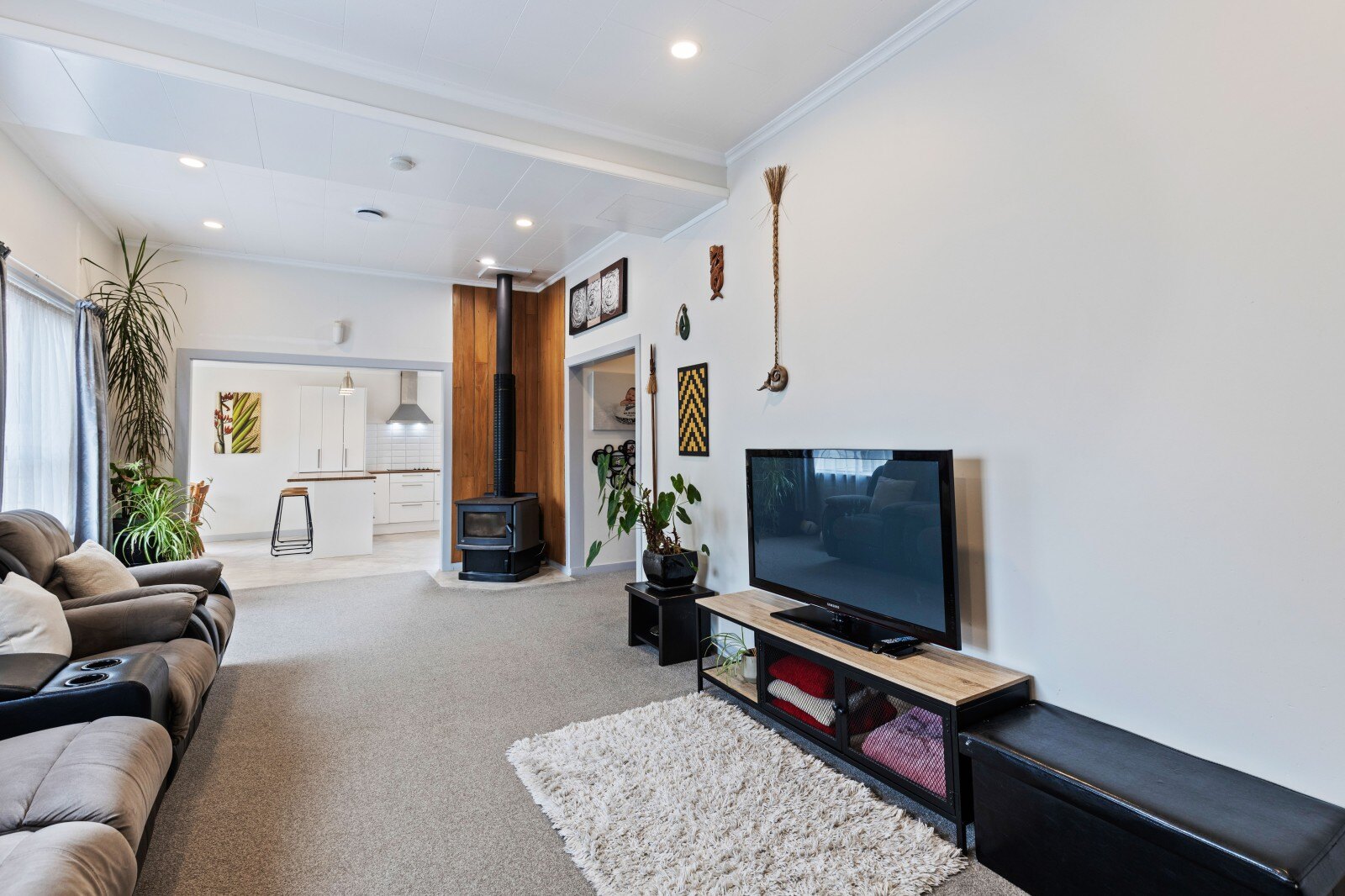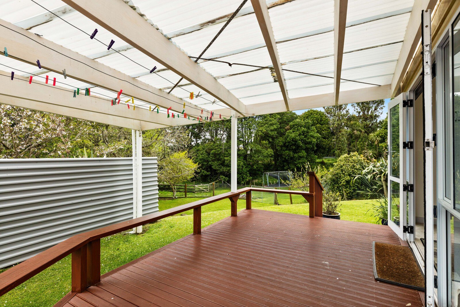 The beautiful modern kitchen seamlessly flows into the dining area, creating a perfect space for both cooking and entertaining. The tiled flooring ensures easy cleaning, while the slightly separate lounge, complete with plush carpet and a cosy fireplace, offers a warm retreat on colder days. Step out from the dining room onto the spacious covered deck, an ideal spot for your morning coffee as you enjoy the sunshine and take in views of the expansive fully fenced backyard. The bathroom offers a shower over the bathtub, a vanity, and a toilet, while the laundry is conveniently located in its own room with easy access to the backyard.