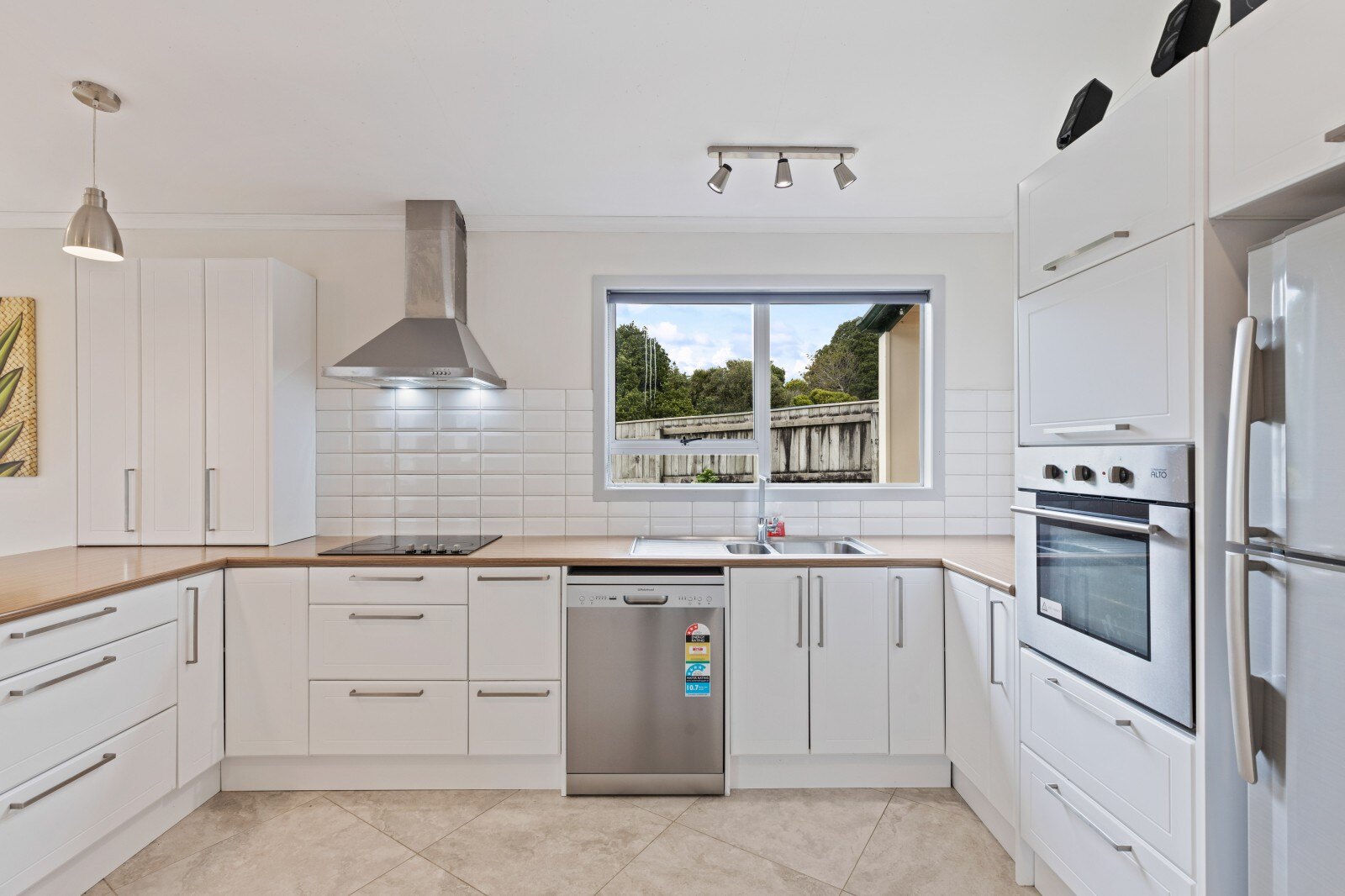 Down the hallway, you'll find three bedrooms. Two of the double bedrooms come with in-built wardrobes, while the master bedroom has a walk-in wardrobe and a private ensuite. The ensuite even connects directly to the double garage—a perfect setup for managing kids coming in from outdoor activities, allowing them to head straight to the shower.