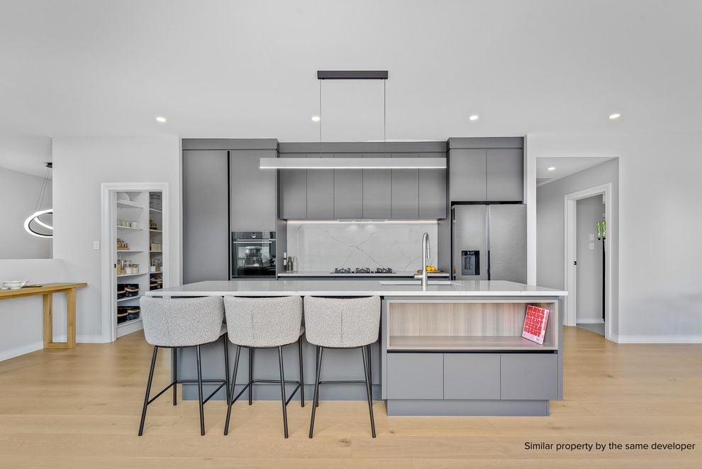 The kitchen will be completed with top-of-the-line appliances, and boasts a walk in pantry area with an additional sink, which is sure to please the chef of the family. The expansive open-plan living and dining area flows seamlessly out onto the north-west facing deck, creating an inviting space that is perfect for both everyday family life and entertaining guests. The bedrooms on the ground floor have their own bathroom, perfect for guests, family members or an office space. The first floor has a further 3 bedrooms including a luxurious master bedroom.