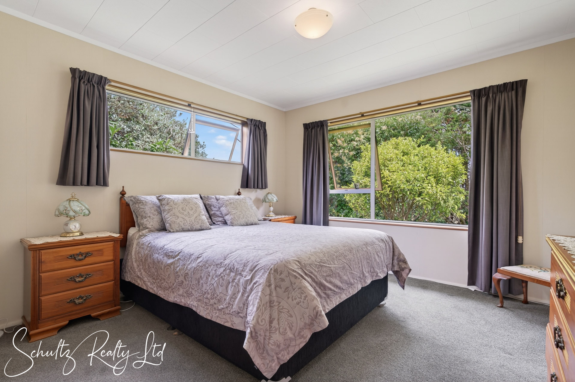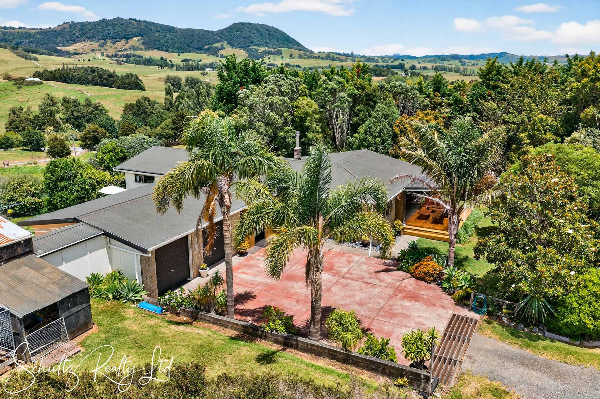 The four-bedroom home plus office is spacious and functional, featuring a country-style kitchen with electric cooking, wooden floors, and a comfortable lounge with a wood-burner, DVS system and heat pump. Bedrooms are generous, including a master with built-in double wardrobe, while practical extras such as double linen storage, a hot water cupboard, additional storage, and a separate large laundry enhance everyday living. A double garage workshop connected to the house adds convenience and versatility. The family bathroom includes a bath and vanity, complemented by a separate modern, updated shower room, along with a separate toilet for added convenience.