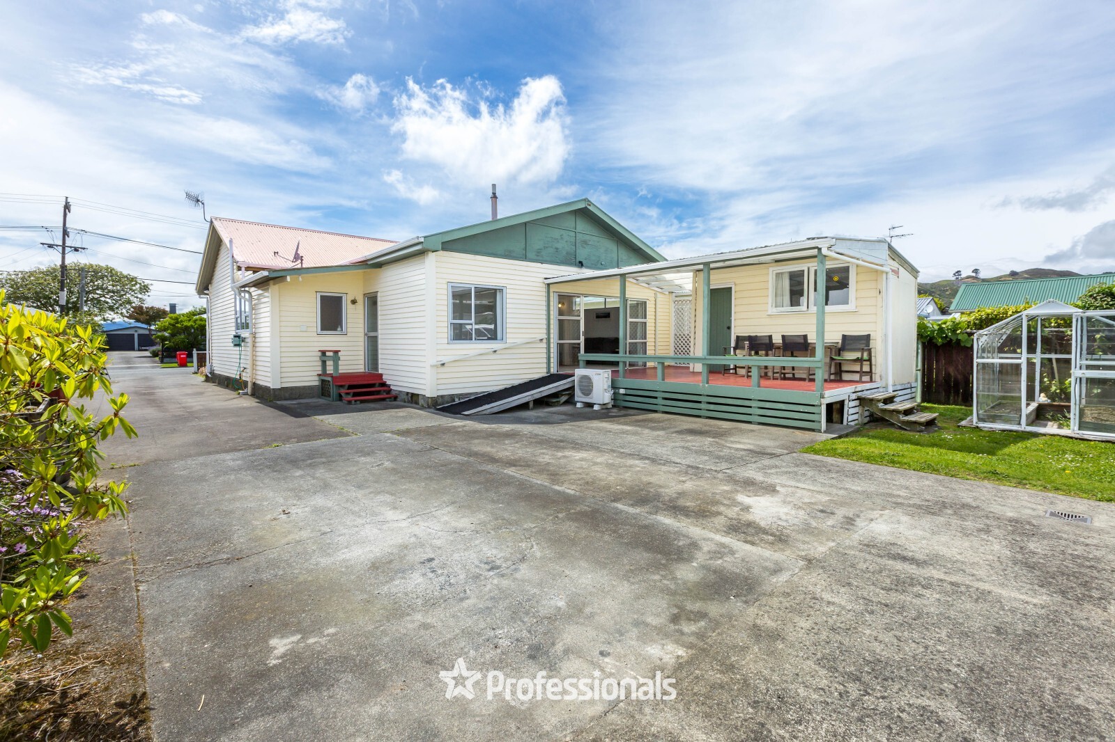 Inside, you'll find a spacious living and dining area that capture the natural light with sliding doors that open up onto a sun drenched deck, creating a welcoming space for family and friends. A heat pump and fireplace ensure comfort all year round. The large kitchen also includes a separate laundry and second w/c nearby for added convenience.