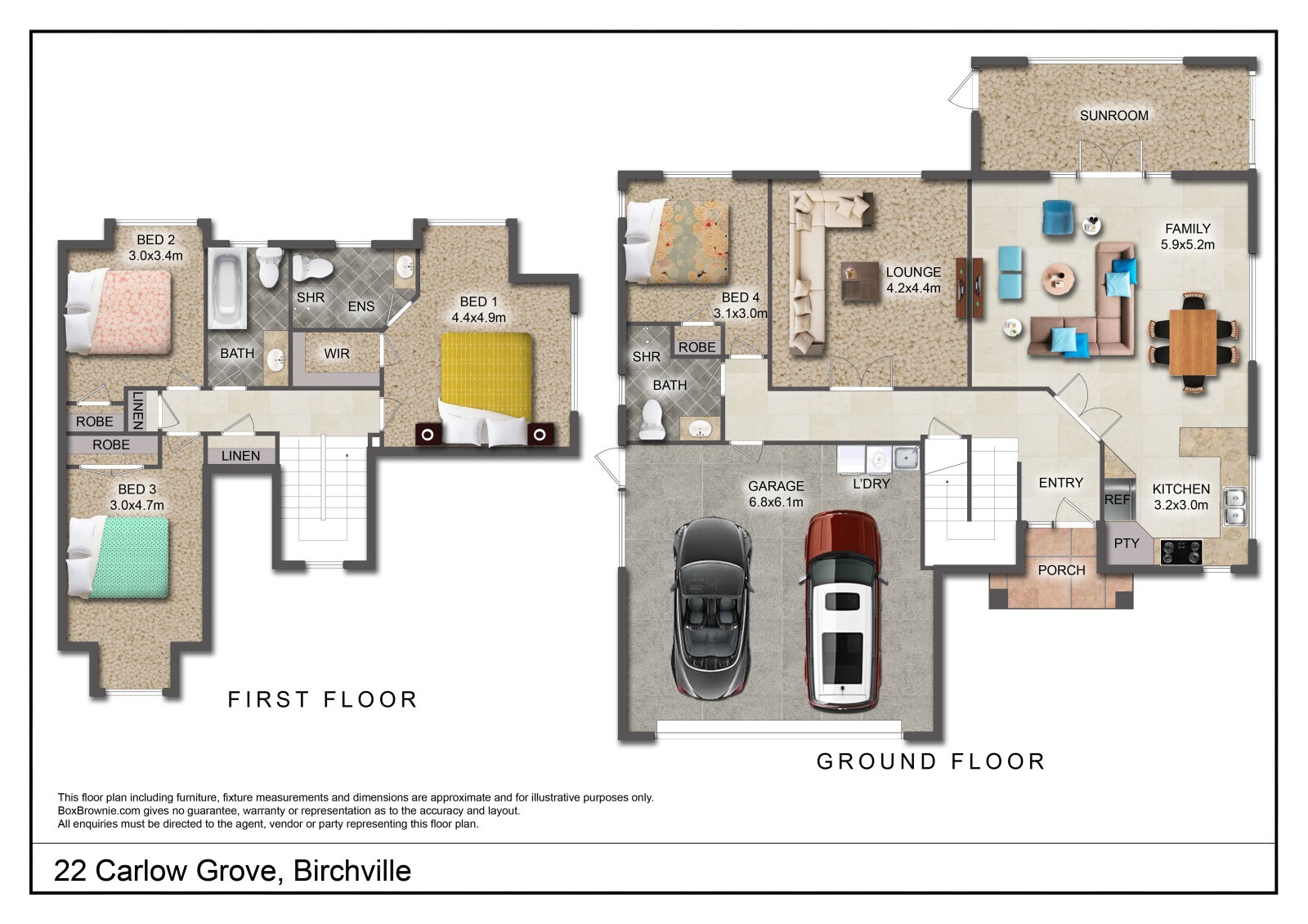 Upstairs, you will find three double bedrooms including a large master bedroom with walk-in robe and private ensuite, along with the main family bathroom.
