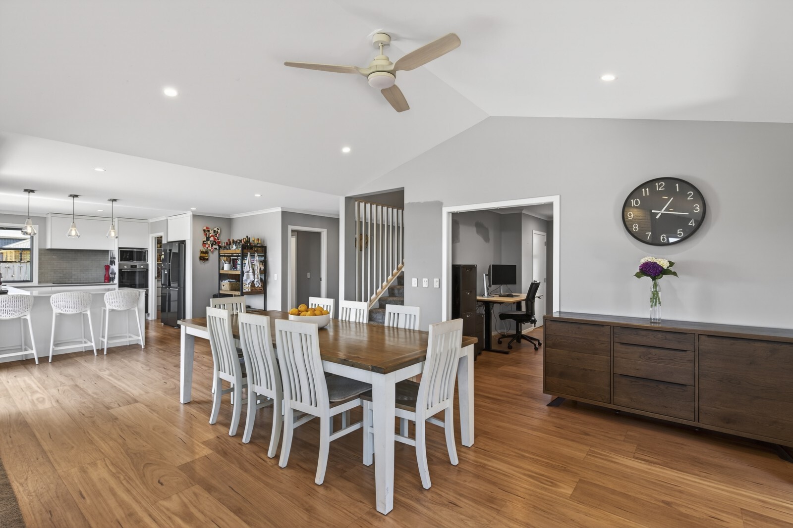 The home offers expansive open plan living, with timber look flooring flowing seamlessly through the main areas and carpeted zones adding comfort. A large open office provides a perfect work from home solution.