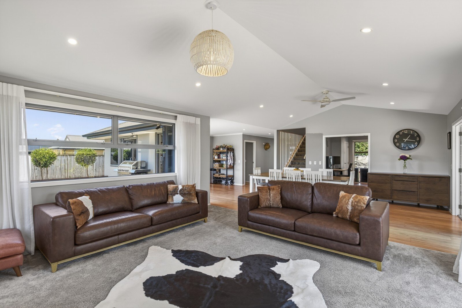 Outdoor entertaining is easy with a sun-soaked deck positioned directly off the kitchen and dining area. Extra large kitchen windows make BBQing and serving inside seamless. The beautifully landscaped gardens, along with a wide concrete driveway offering generous off street parking, complete this impressive family home.
