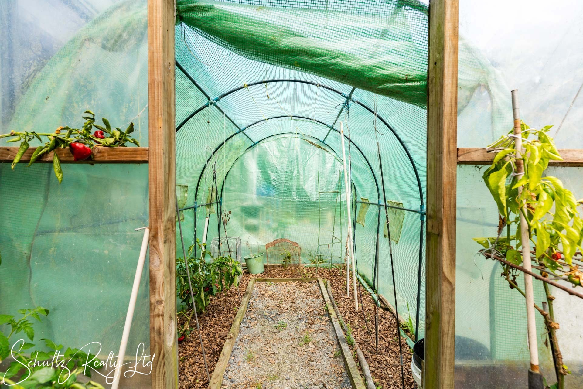 garden with greenhouses, a chicken coop, and even a stable complex with arena. Under the house, a tack room and calf-rearing