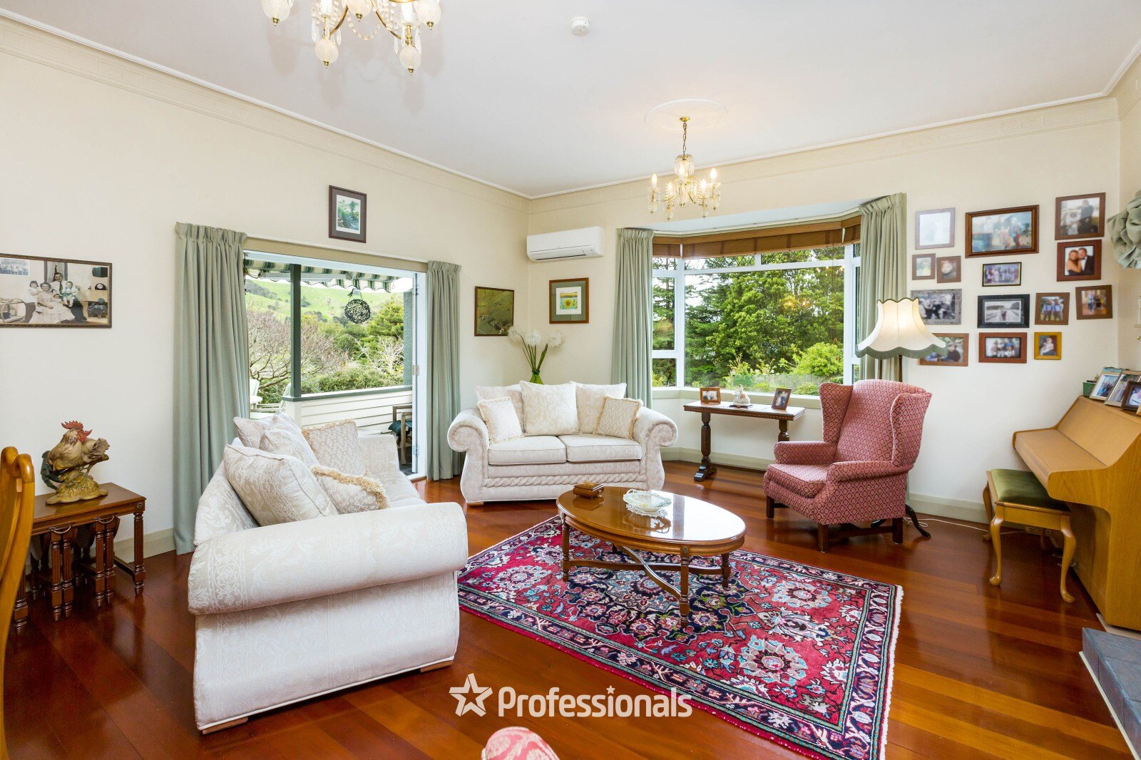 Set on 2 hectares of breathtaking land, this exceptional home offers spacious living with high stud ceilings, polished matai floorboards, and original Rimu doors and trimmings.