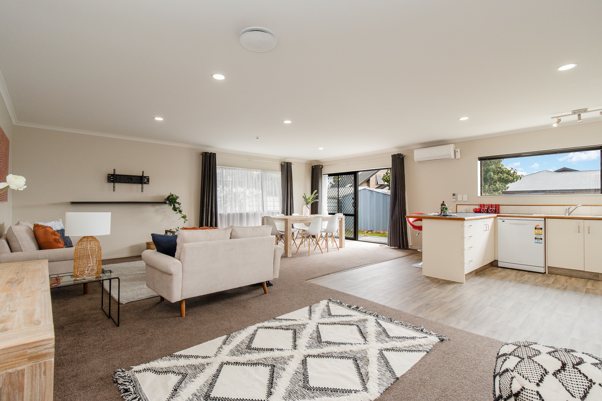 The lounge flows out onto a fully fenced flat lawn, great for family or entertaining.