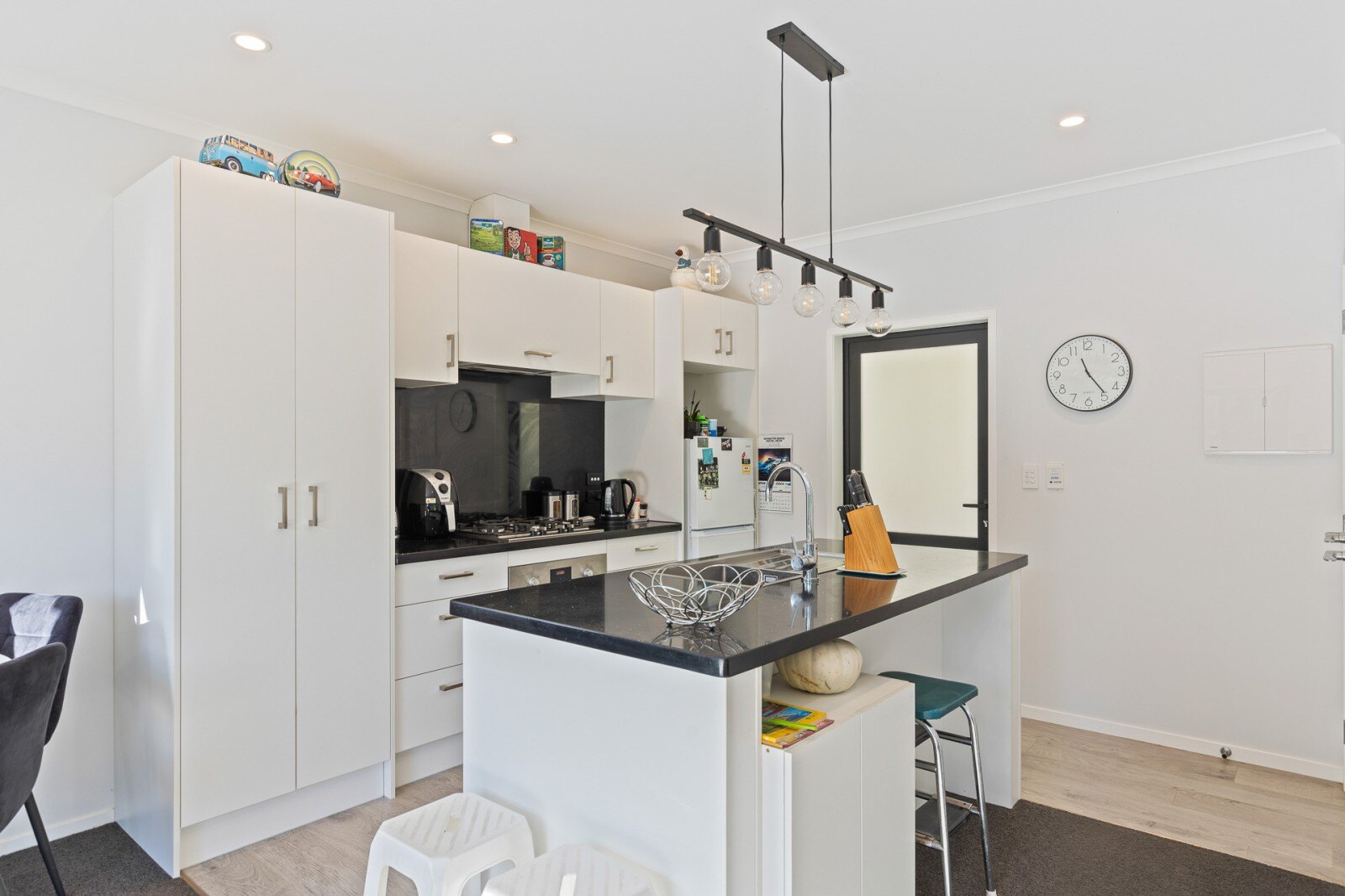 With an open plan layout for the kitchen, dining, and living the layout of this home is perfect for the use of space on offer, opening up to a north facing, sunny outside deck area with privacy screen, manicured lawns and garden with landscaped frontage.
