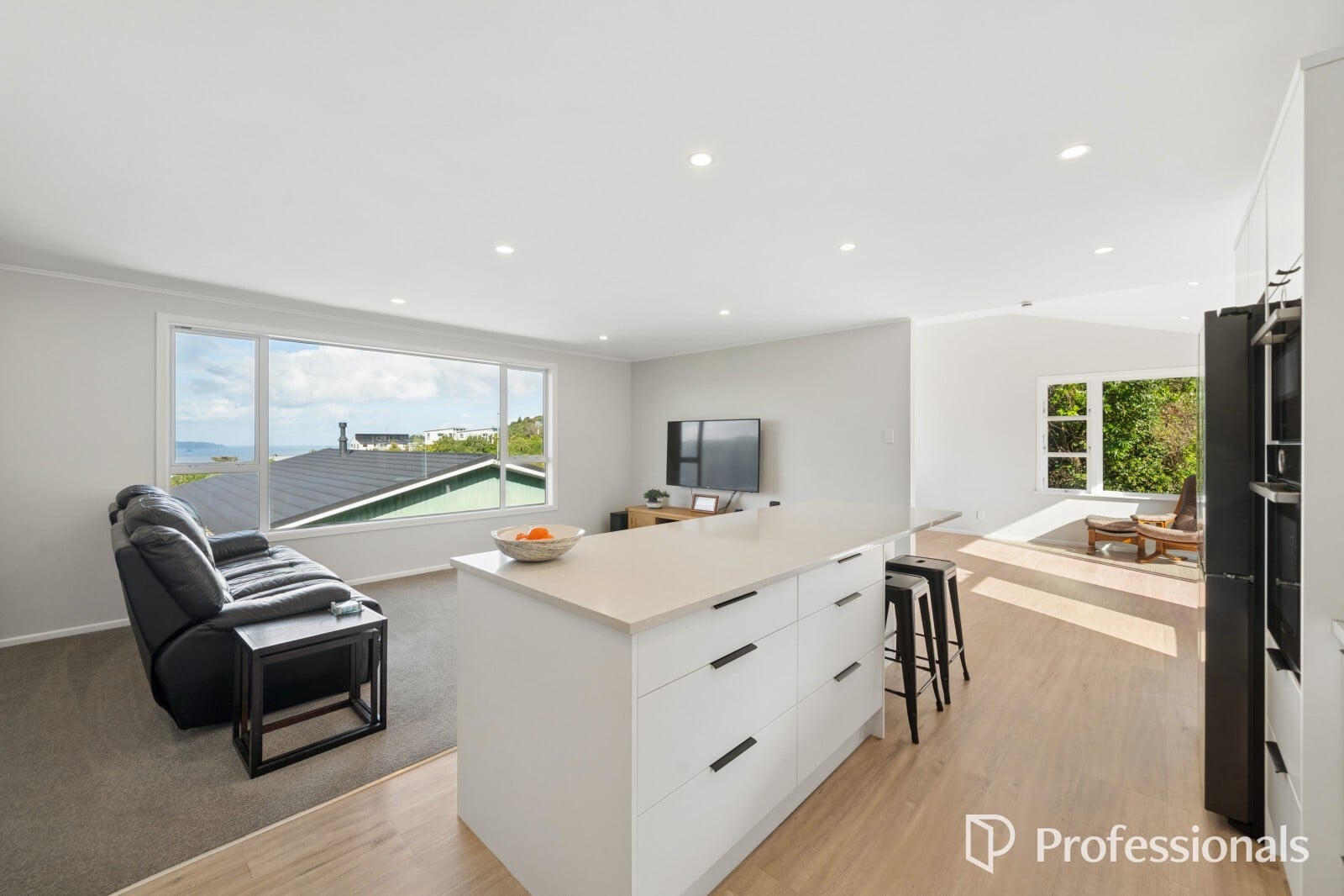 Offering four bedrooms, two living areas plus a versatile downstairs rumpus, there is room for families to spread out and enjoy. Three bathrooms, including two brand new and beautifully finished, bring sleek style and everyday convenience. The new modern kitchen is a standout, featuring top of the line appliances, a walk in pantry, expansive bench space and a large central island big enough to gather the whole family around. Open plan with the living and dining, and framed by large windows, this is a space designed for entertaining while making the most of the ever changing landscape and sea views beyond.