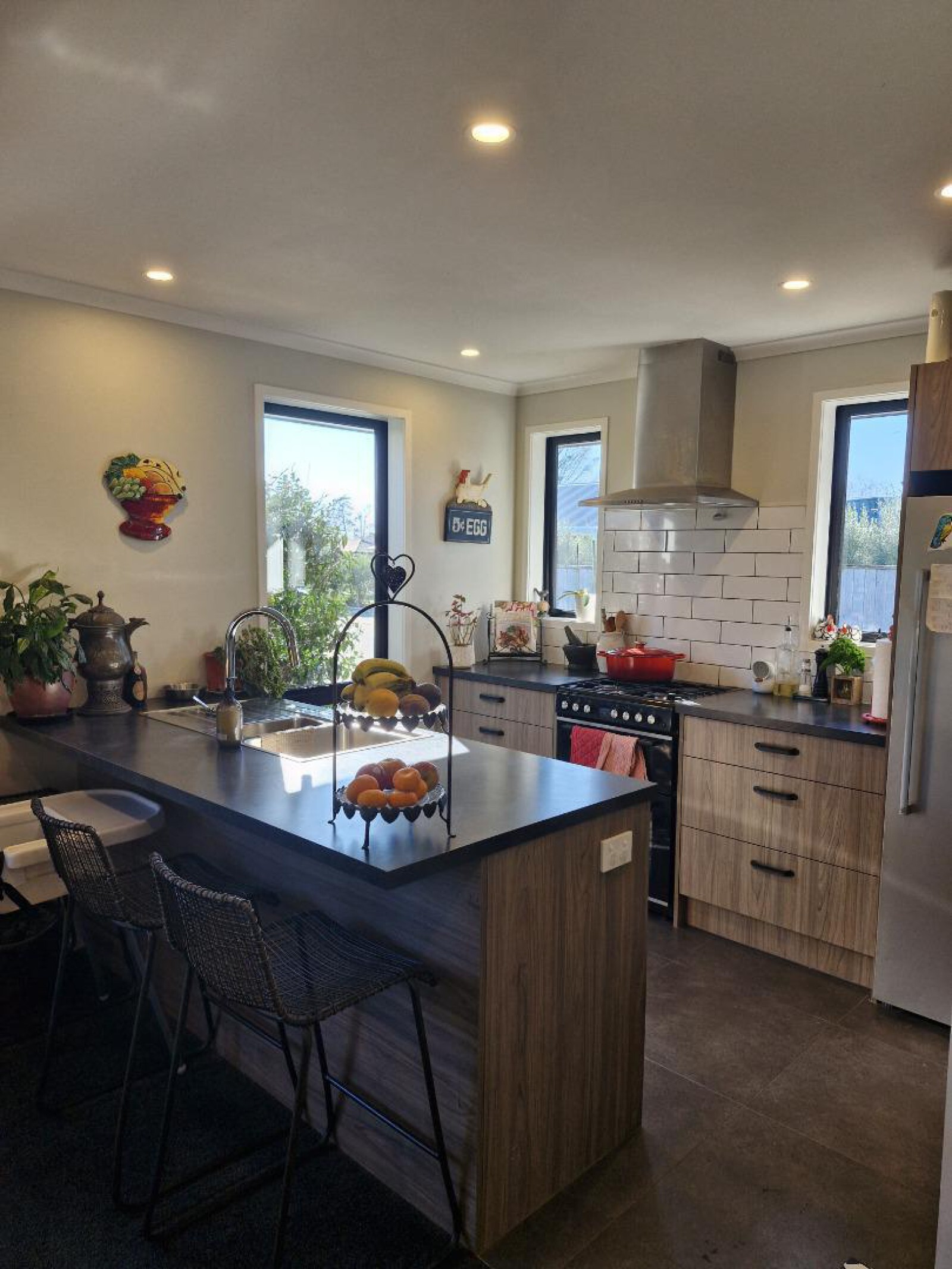 Open plan kitchen with walk-in pantry, gas hob, spacious dining and lounge with doors that lead out on to the alfresco deck. single story