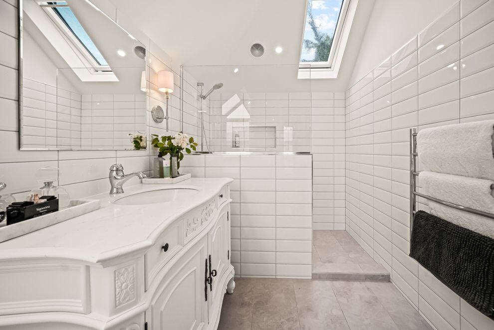 The generously proportioned bedrooms offer ample space, with the master suite boasting a large ensuite for added luxury. Numerous skylights, including one with rain-sensor technology, can be opened to allow refreshing flow-through ventilation, while the garden comes alive at night with enchanting lights.
