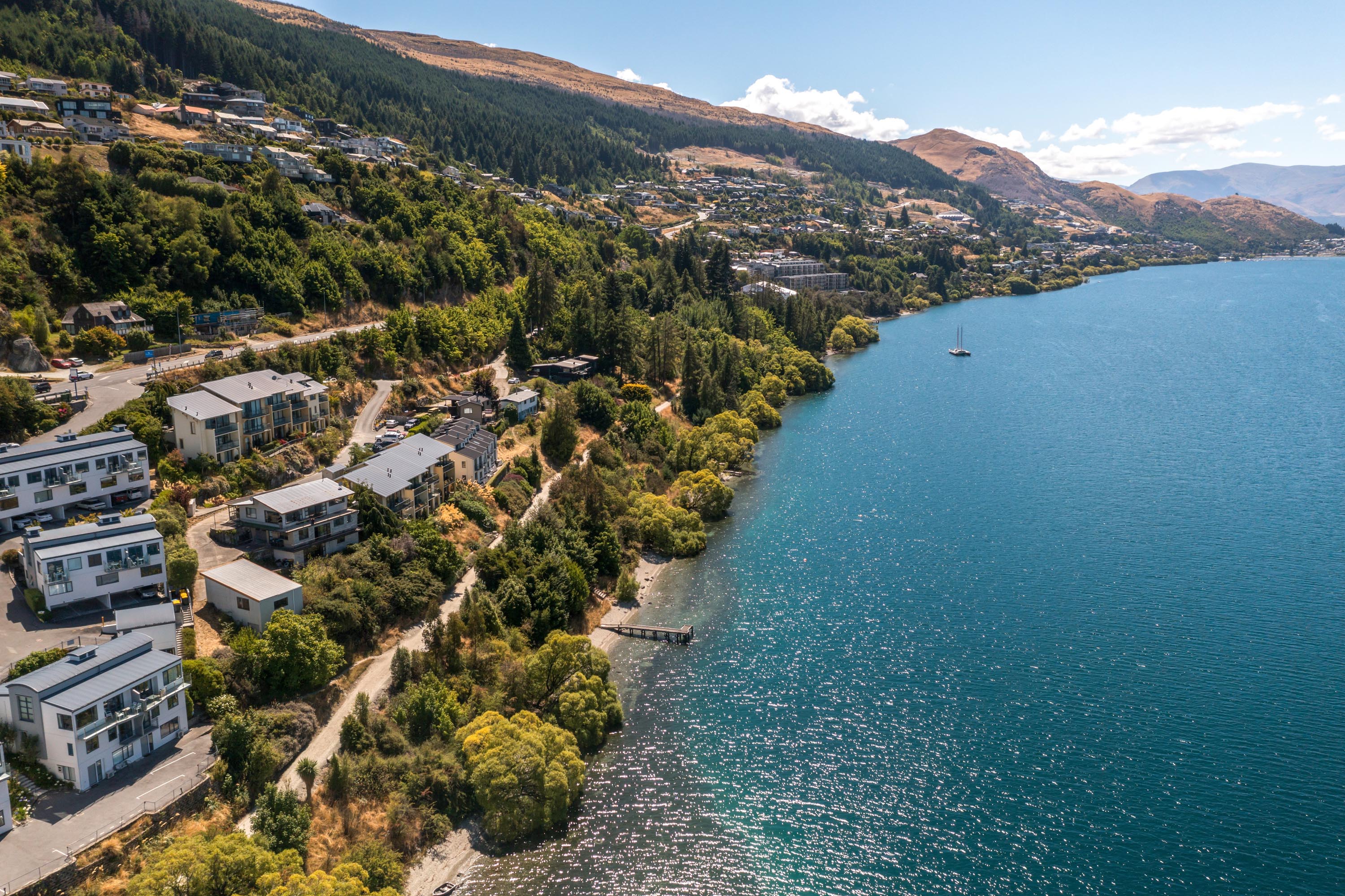Located adjacent to the Frankton walking track and lakefront, this 1199m2 site boasts a stunning 54-meter lake frontage.