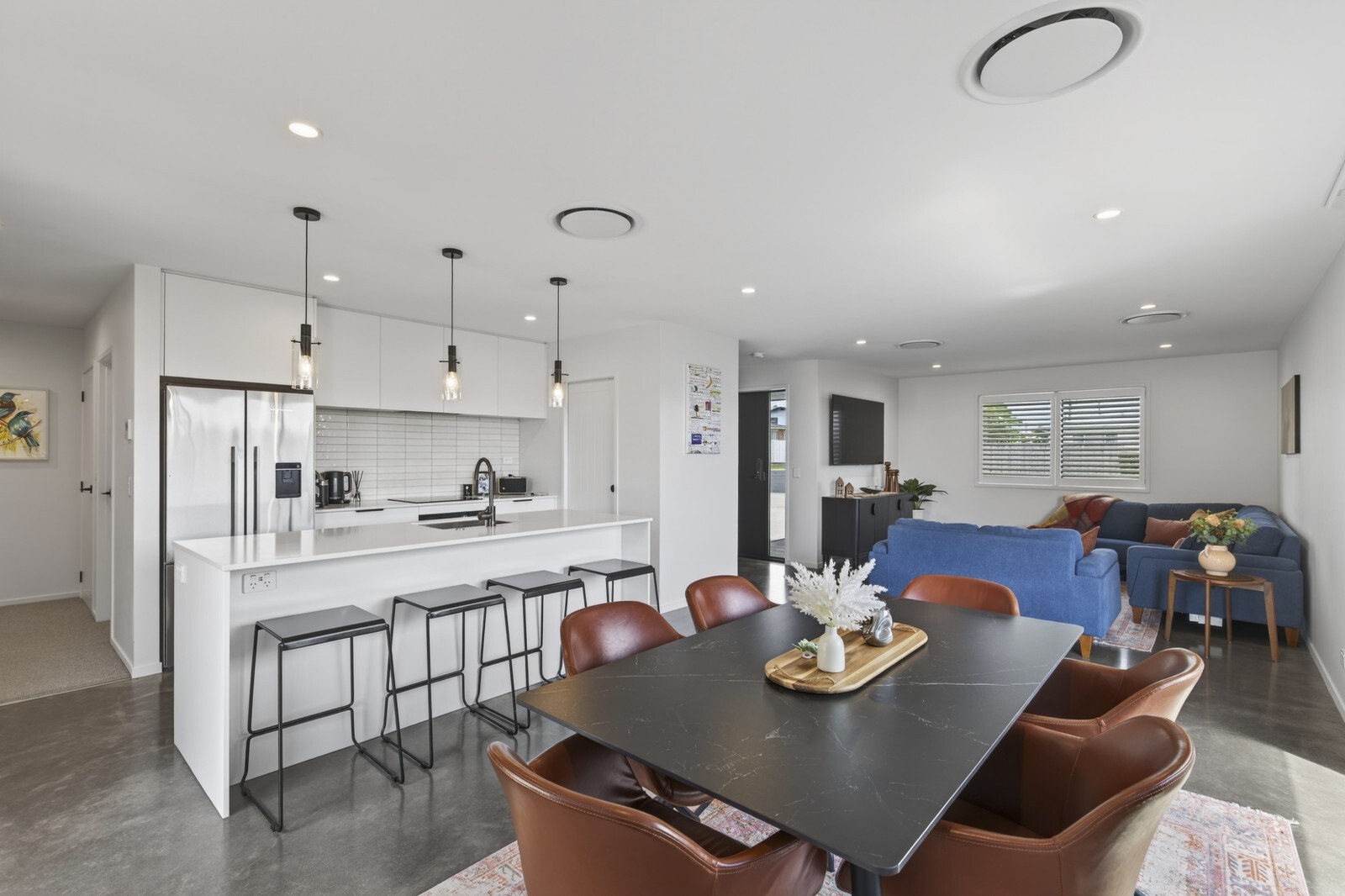 Inside, polished concrete floors anchor the open plan living, with plush carpet in the bedrooms for comfort. A Mitsubishi ducted heat pump system provides year round climate control throughout. The kitchen sits at the centre of the home, featuring a generous island and a well designed spacious pantry. Living and dining flow seamlessly outdoors to the two entertaining areas as well as spa pool. Three bedrooms are positioned off the hallway, serviced by a stylish family bathroom. The master includes a walk in wardrobe, tiled ensuite and direct outdoor access to the yard and spa area too. The carpeted garage offers flexibility as a gym, office or additional living space, complete with attic storage and integrated laundry.