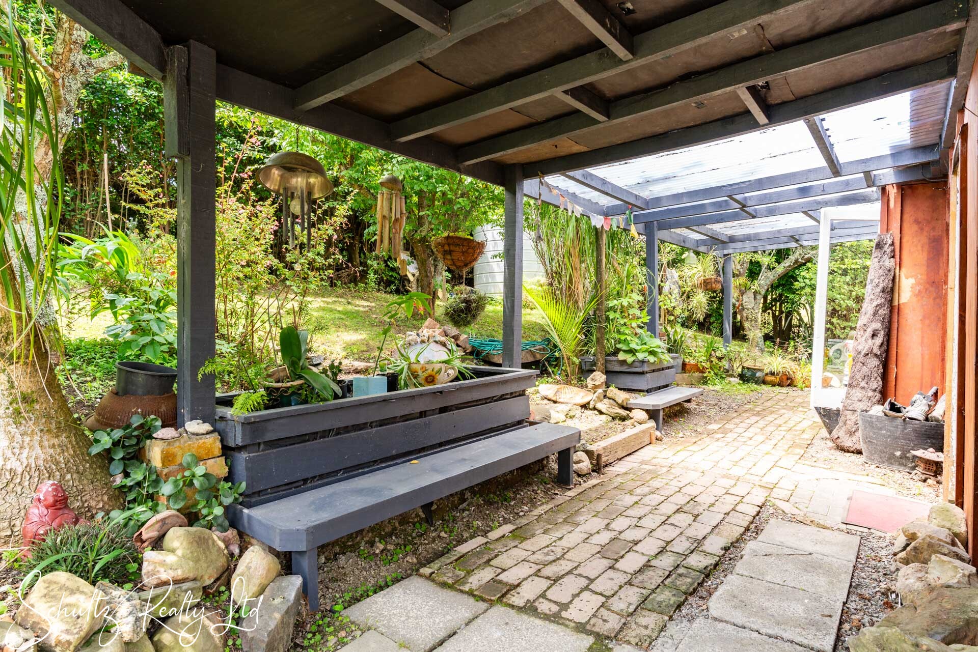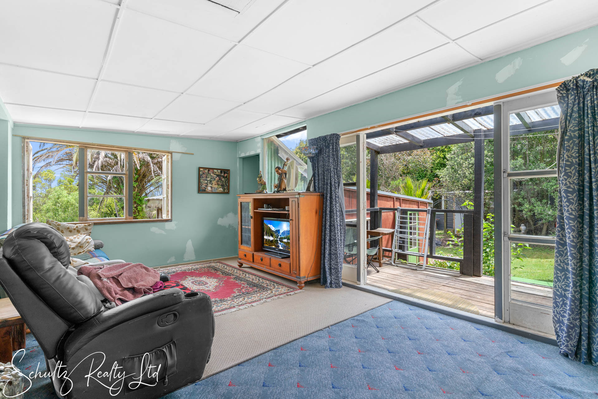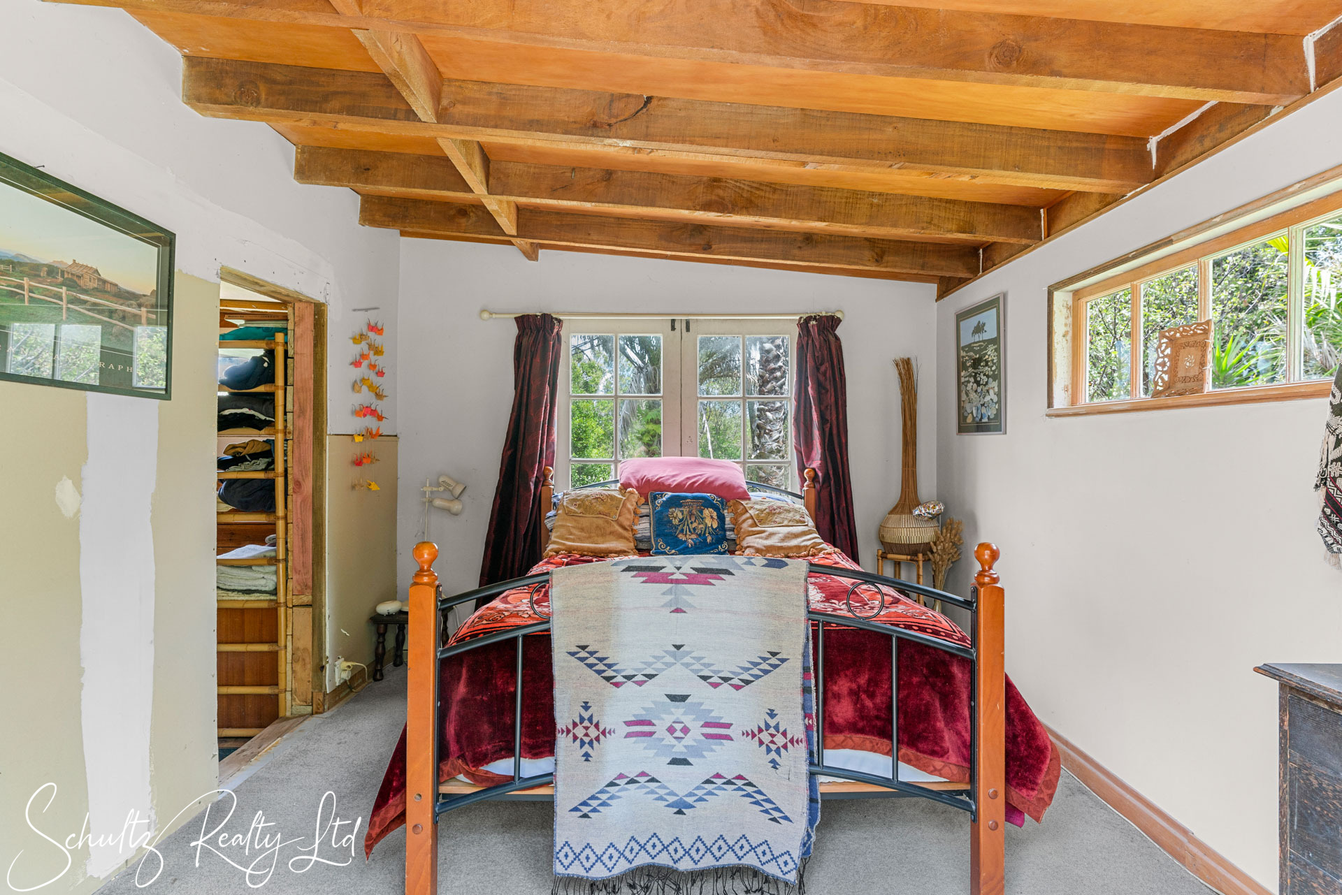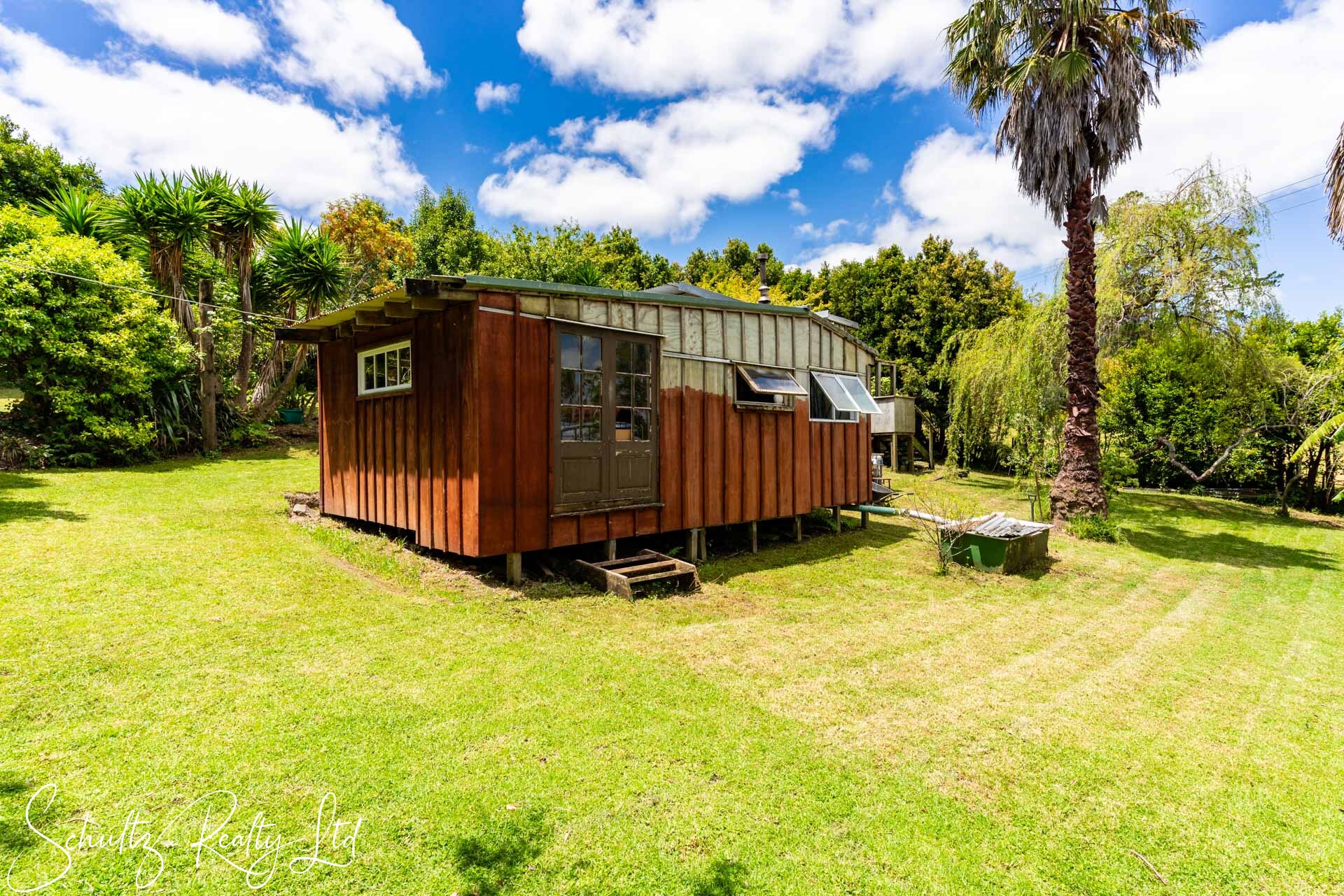Currently requiring attention, the property lacks proper consents from the council. Although power installation has been certified, the wood burner and home remains unconsented. The dwelling includes a covered deck that extends seamlessly from the living area, offering a pleasant outlook. Additionally, the laundry is situated outside, while the home is equipped with a gas califont for hot water and gas cooking. A shed featuring a workshop and a single-lined room provides valuable extra storage and potential accommodation for family and friends.