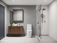 The master suite occupies its own floor, creating a private sanctuary complete with a balcony, bespoke wardrobe joinery, and a beautifully appointed ensuite. The bathroom's freestanding tub, refined mirror cabinetry, and high-quality fittings all contribute to a sense of quiet indulgence. The remaining bedrooms are positioned on the lower levels, offering comfort and privacy for guests or family. Underfloor heating in tiled areas, zoned heat pumps, European oak flooring, and soft Cavalier Bremworth carpet add to the home's warmth and premium feel, while keyless entry offers modern convenience.
