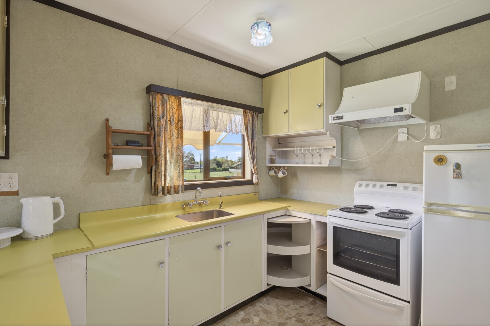 A standout here is the beautiful stained glass windows work, handcrafted by the owner, adding character and a personal touch you won’t find just anywhere. The lovely paddock outlook is a nice extra feature that you don’t easily come by in residential suburbia. The gardens are established with room to change up as you see fit with the added bonus of the single garage. The living room is open plan with a conservatory and covered veranda flowing off to the side.