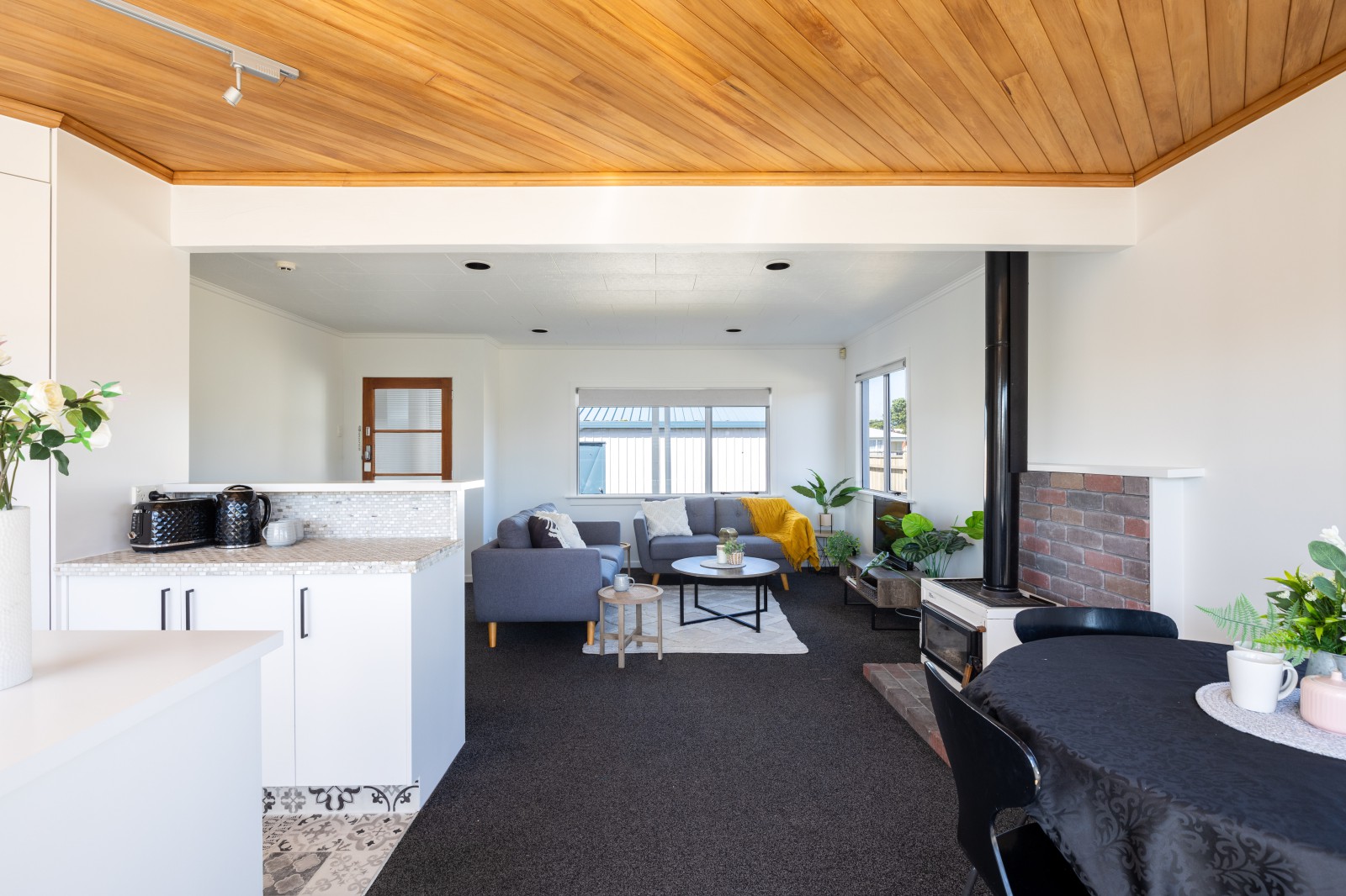 Step onto the freshly painted covered front deck and enter into the spacious open plan living room which flows nicely with the dining and kitchen. The fireplace offers an excellent source of heat and comfort for the cooler months.