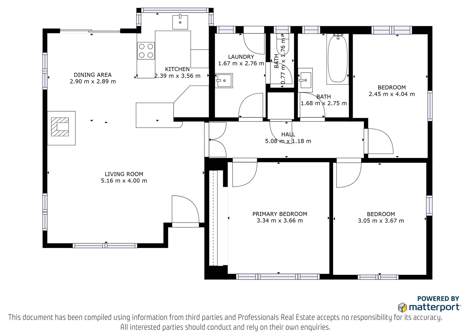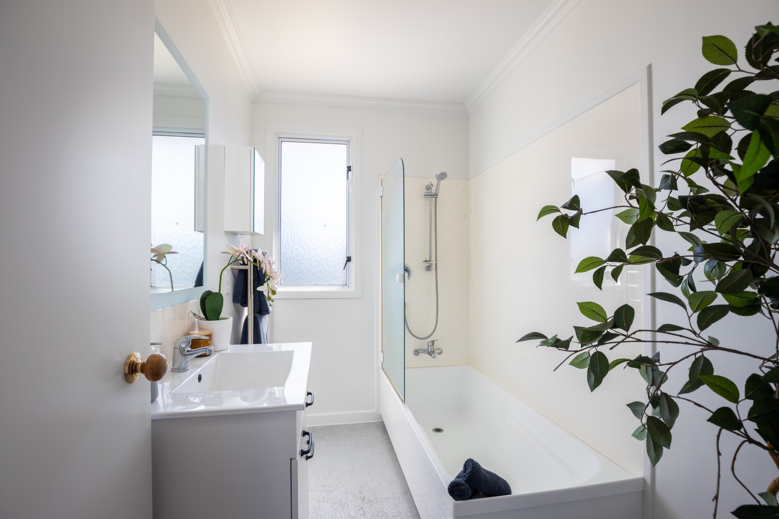 Down the hallway are the 3 bedrooms (2 double bedrooms and 1 single), a spacious modernised bathroom with shower over bath. The seperate toilet sits adjacent to the seperate laundry.