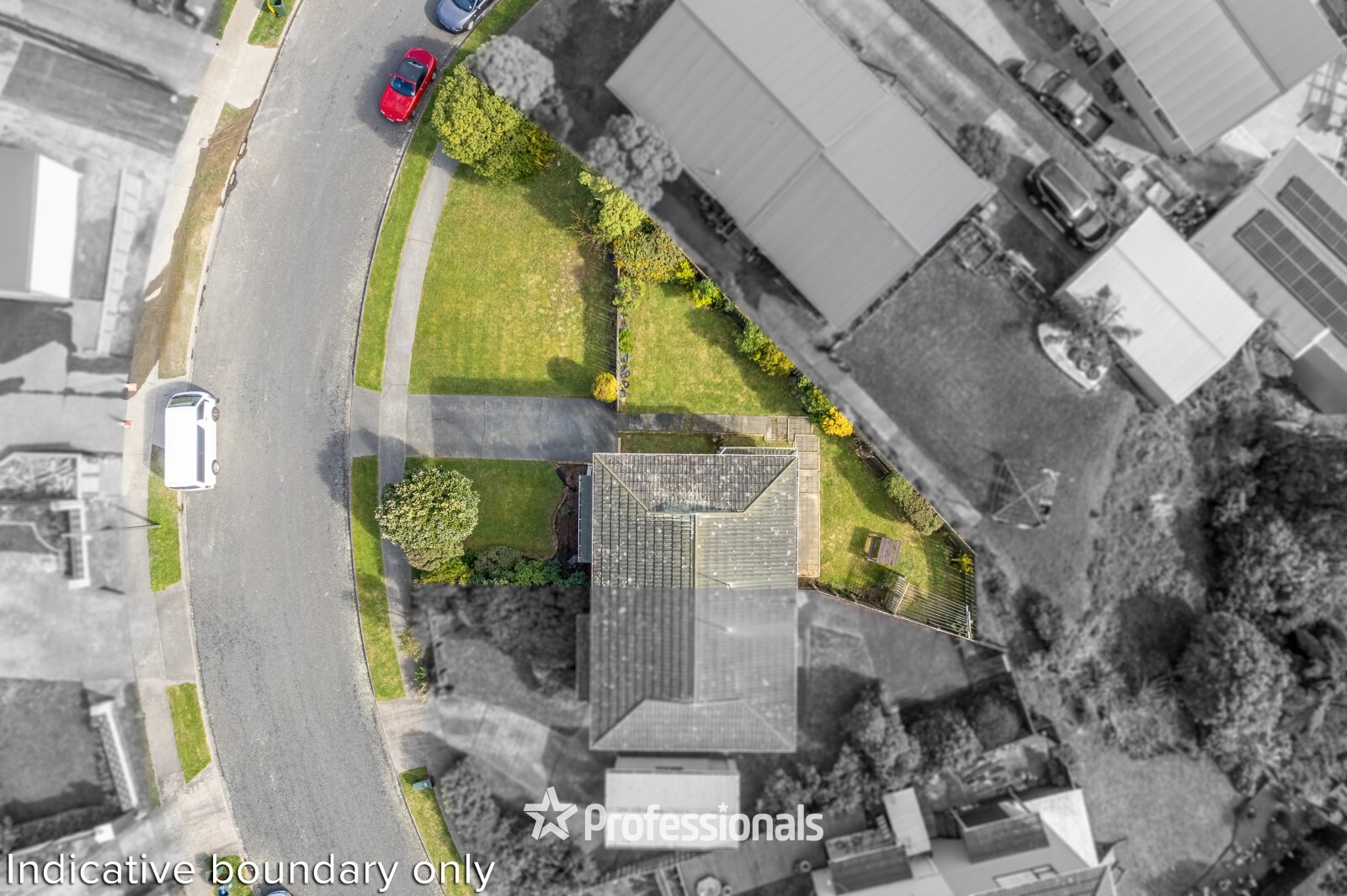 - Flat front lawn with potential
