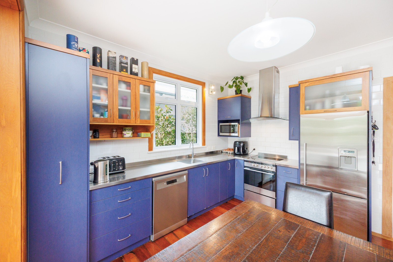 Warmth and comfort are assured year-round with double glazing, a log fire and 2 heat pumps. Outdoor living is equally appealing - enjoy a sunny north-facing deck for afternoon relaxation, or step onto the sheltered side deck & patio for all-weather BBQs and gatherings.