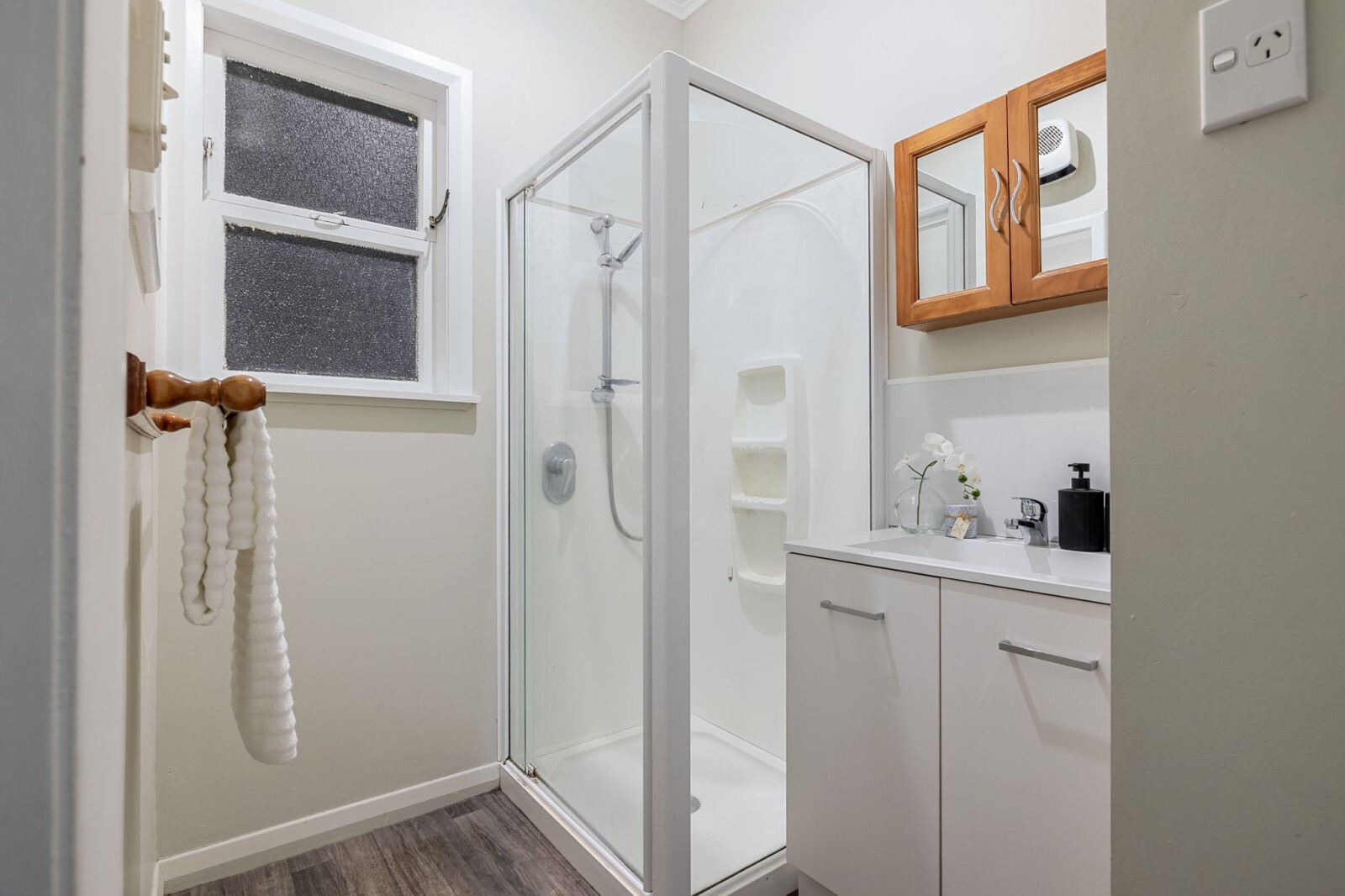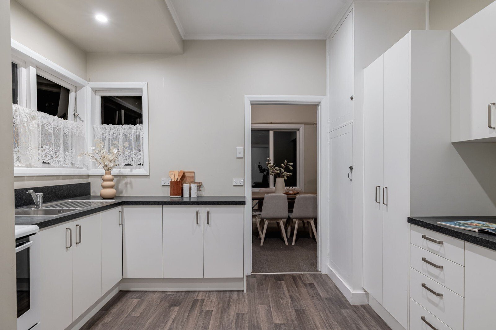 The home is designed for easy living, with an open-plan kitchen (updated in recent years) and living area forming the heart of the space. It is a place where daily life feels connected and relaxed, with natural light flowing through and a layout that makes cooking, dining and unwinding effortless. Outside, the generously sized section offers privacy and peace of mind, complemented by a well-maintained garden and an established apple tree that adds to the overall charm.