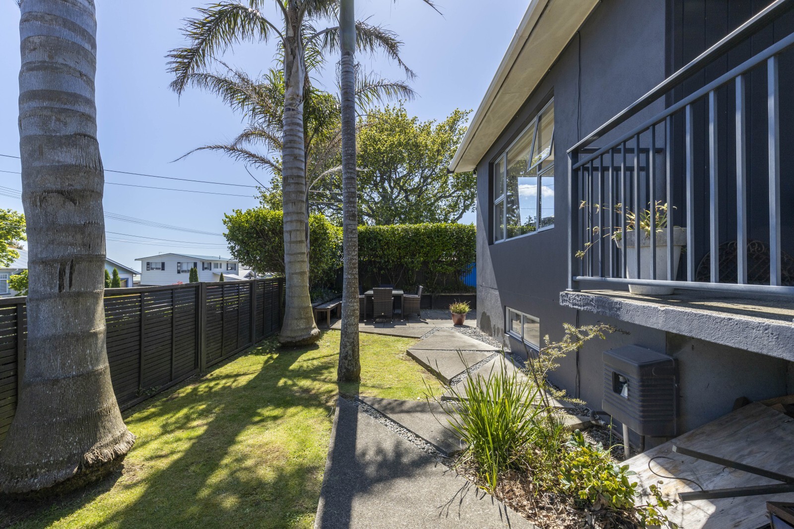 Outside, mature palms and easy-care gardens create a laid-back, Beverly Hills vibe. A fully fenced 524sqm property perfect for kids, pets, and weekend barbecues. There’s plenty of off-street parking, including space for the caravan or camper, ideal when friends and family visit for Womad or the Festival of Lights.