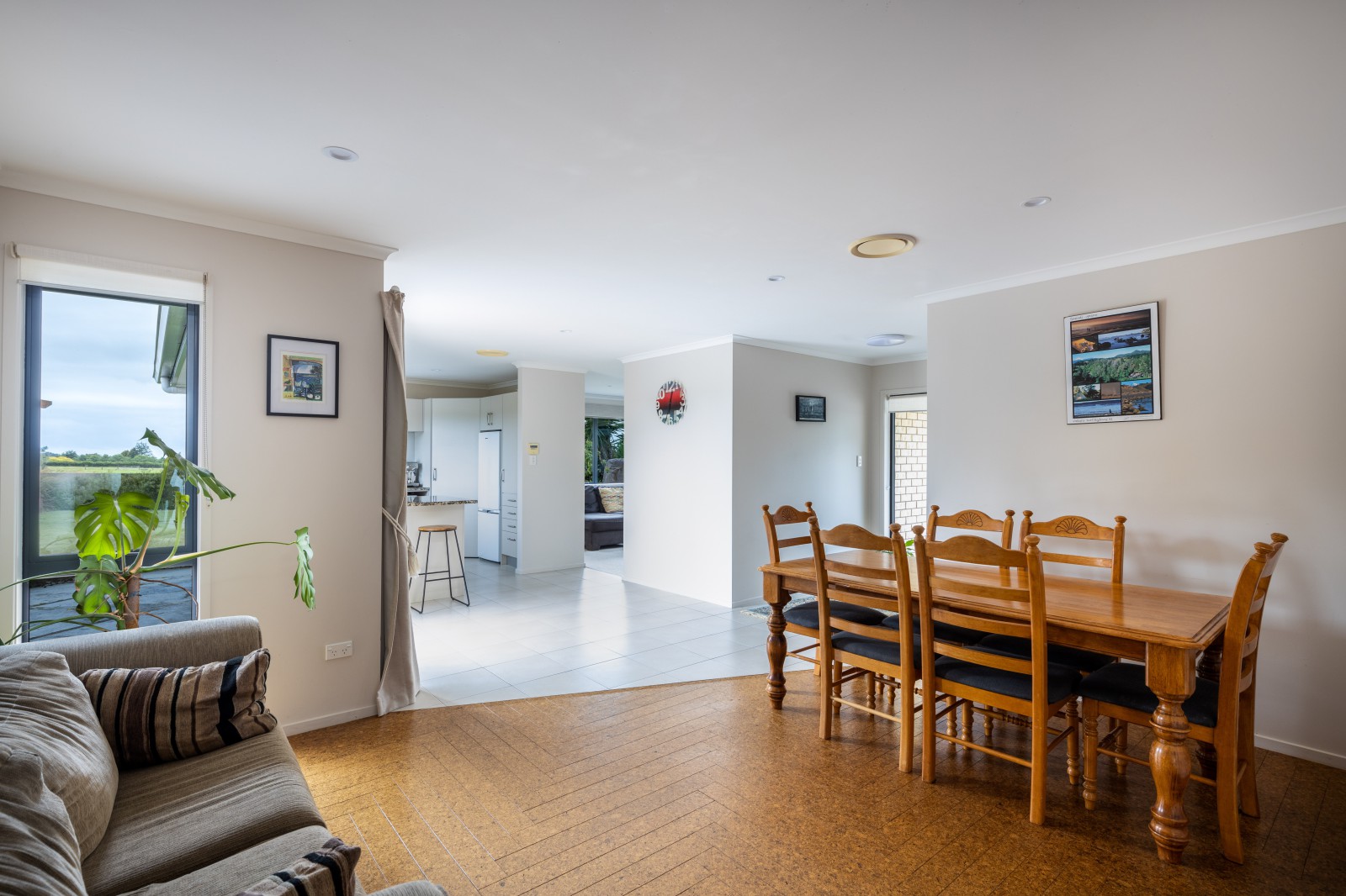 Along with double garaging that provides internal access, outside, the property boasts an extra two-car garaging with a studio style room attached. This offers endless possibilities for use as a hobby space, home gym, or additional storage. The large, flat section embraces a serene rural aspect and a range of mature fruit tress, providing a peaceful and private outdoor setting for you and your family to enjoy.