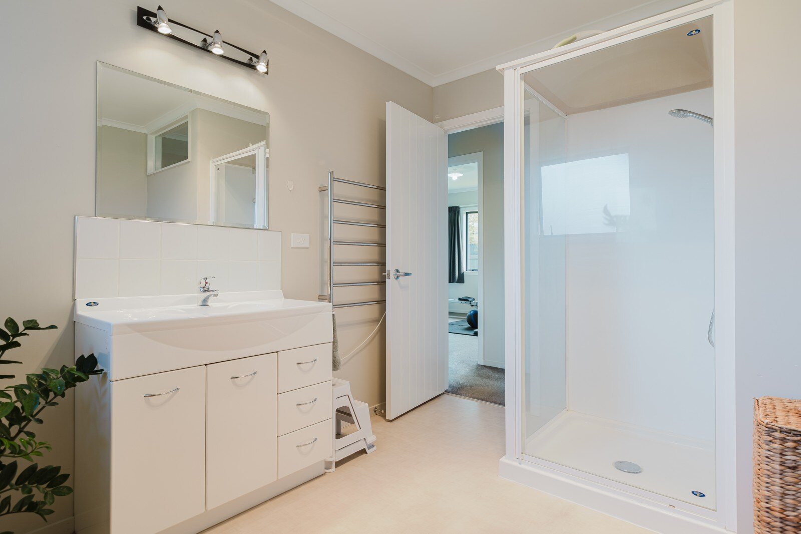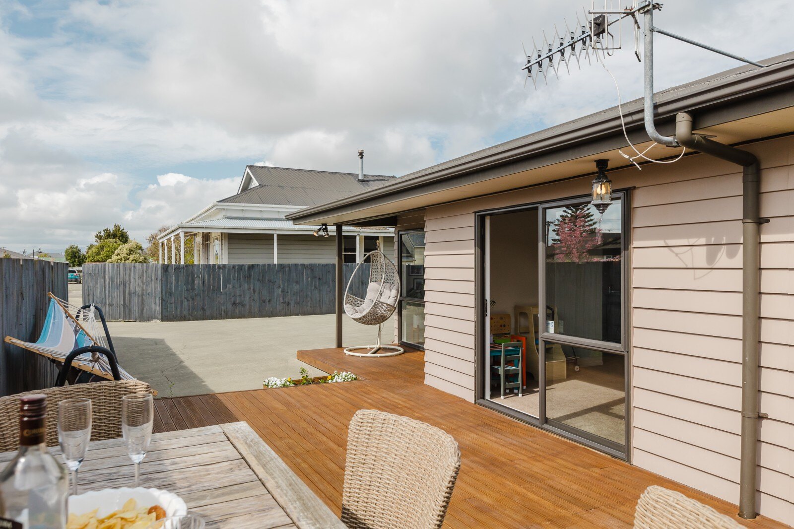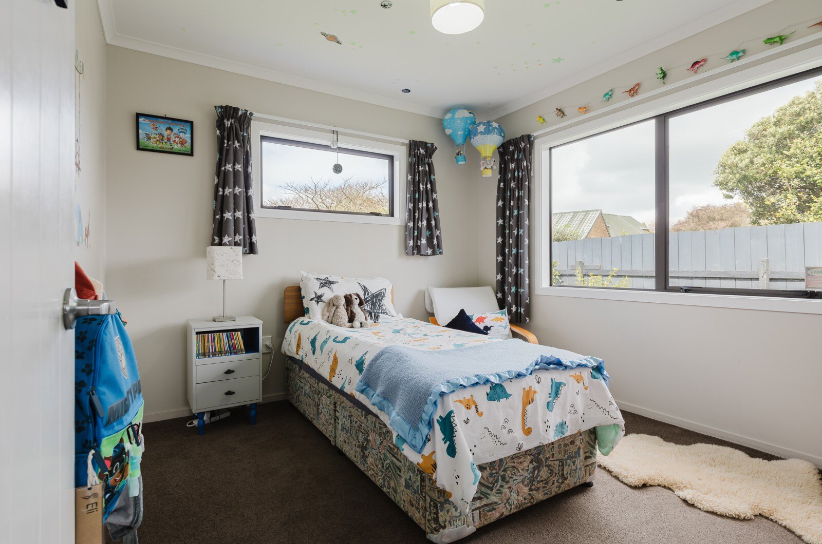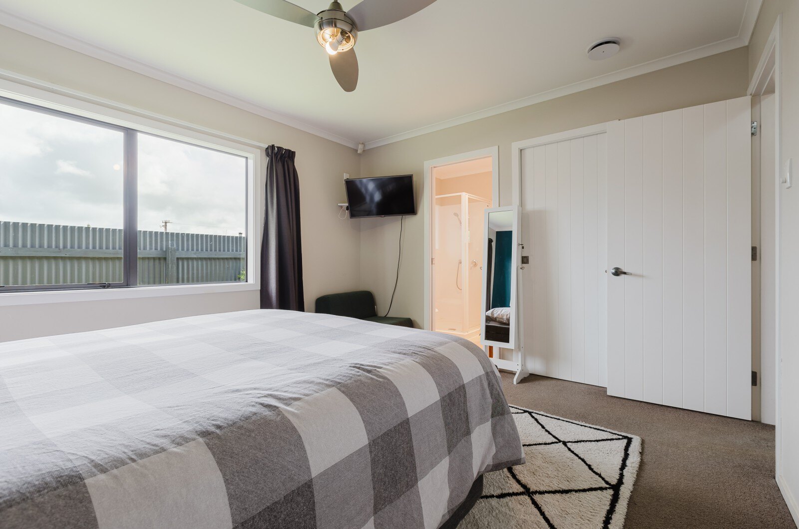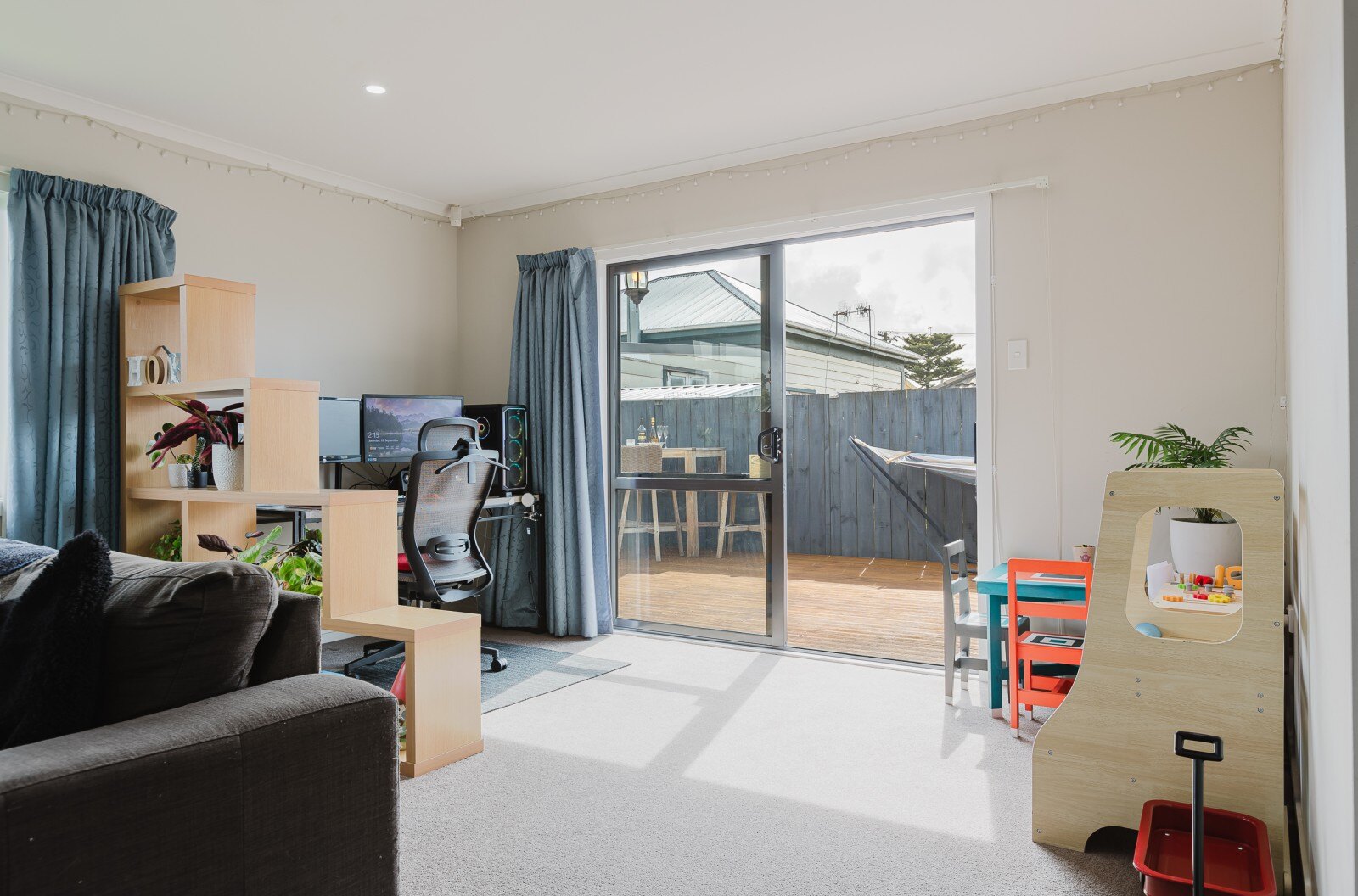 Step inside to find a spacious open-plan kitchen, dining, and living area bathed in natural light, perfect for family gatherings and entertaining. The flow from this area to a sunny outdoor deck makes it ideal for BBQs and summer evenings. The living space is designed for comfort, with plenty of afternoon and evening sun, complemented by a heat pump, insulation and an HRV system for year-round warmth.