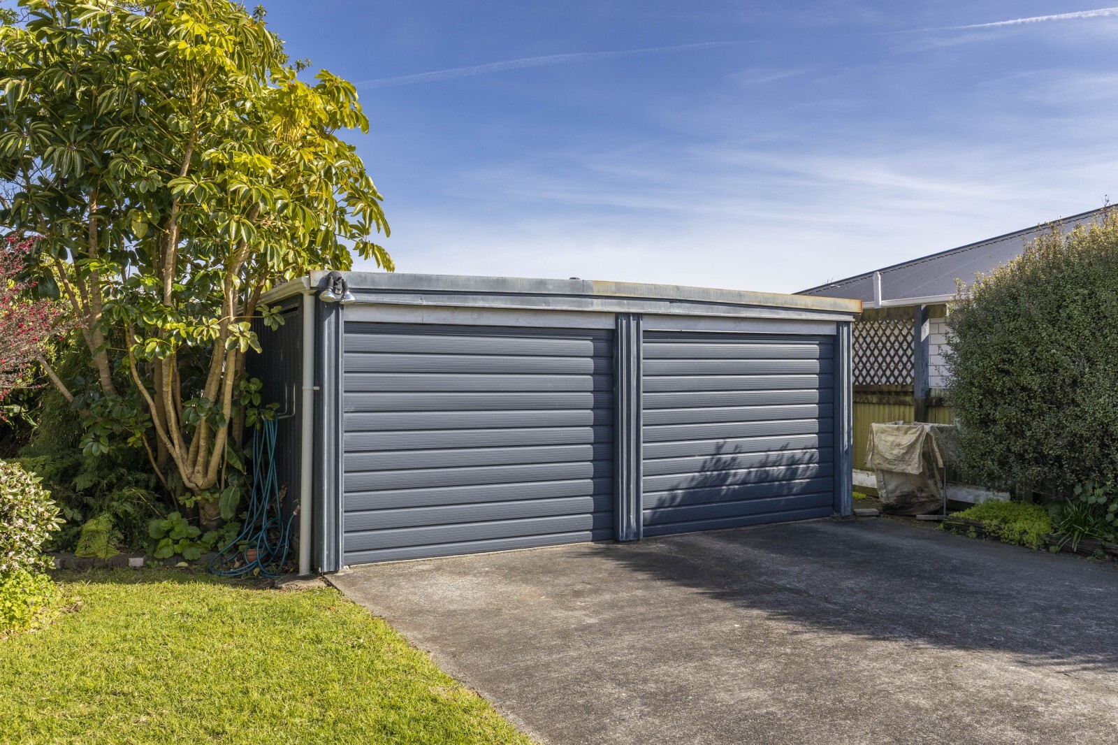 Situated on a flat 700-square-metre section, this property benefits from established gardens that provide privacy and enhance the outdoor space. The double garage, equipped with automatic opening, offers ample storage and parking options, complemented by off-street parking for guests.