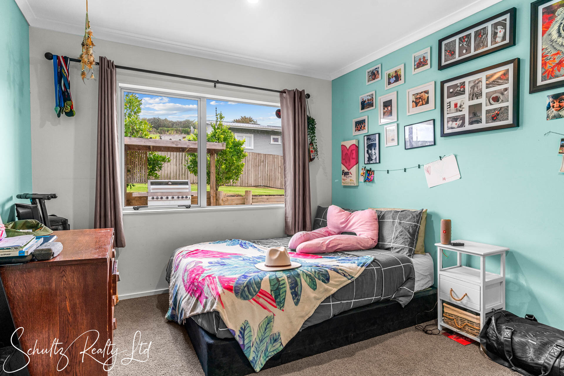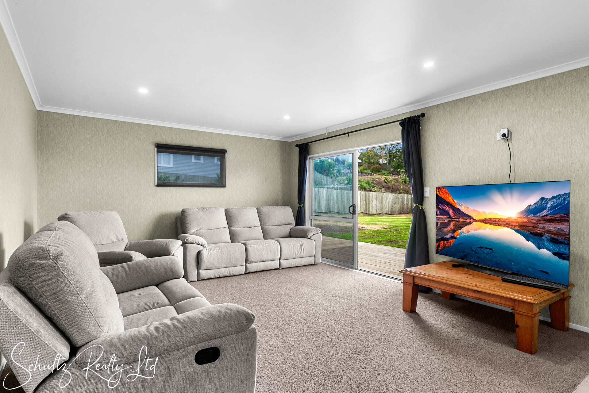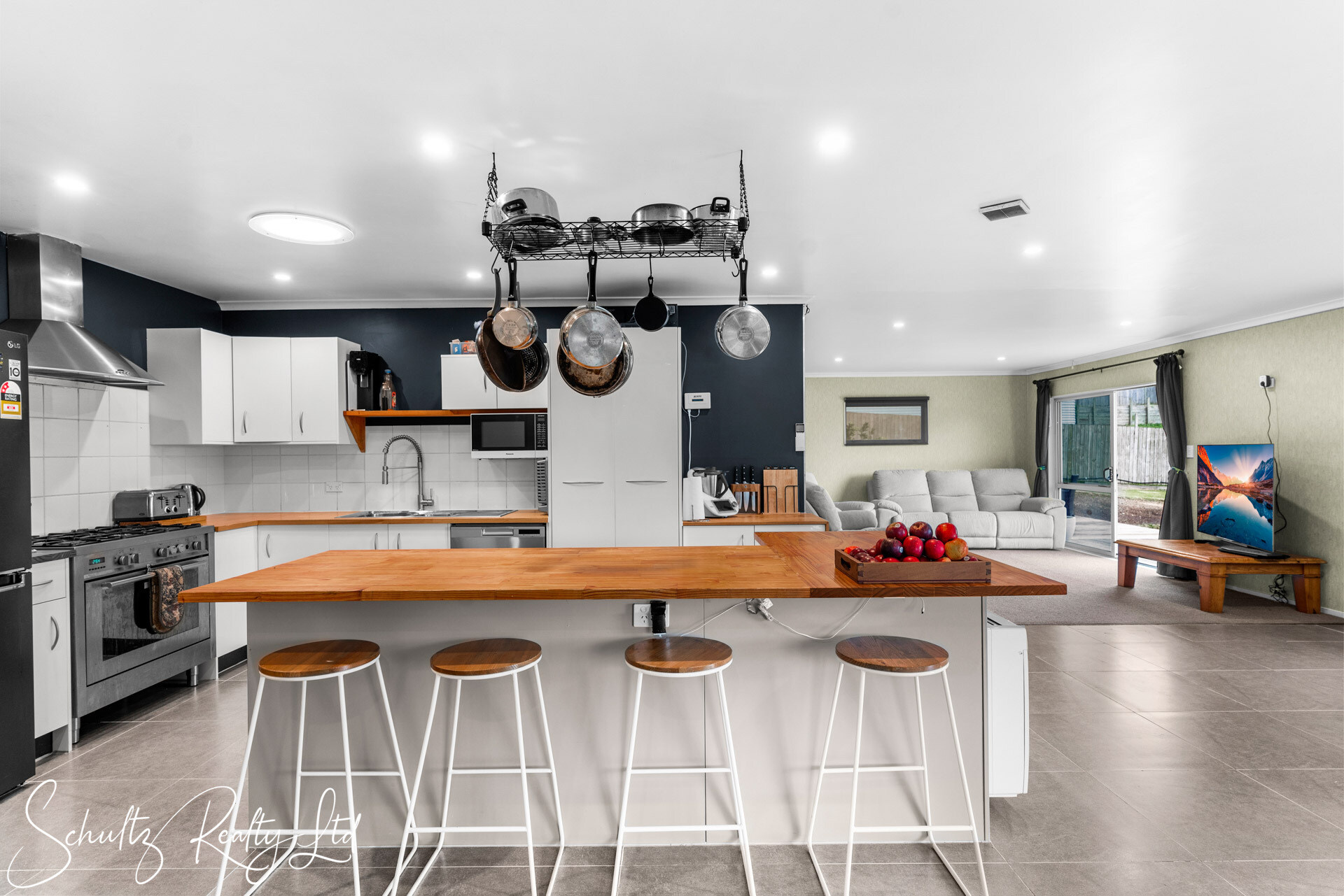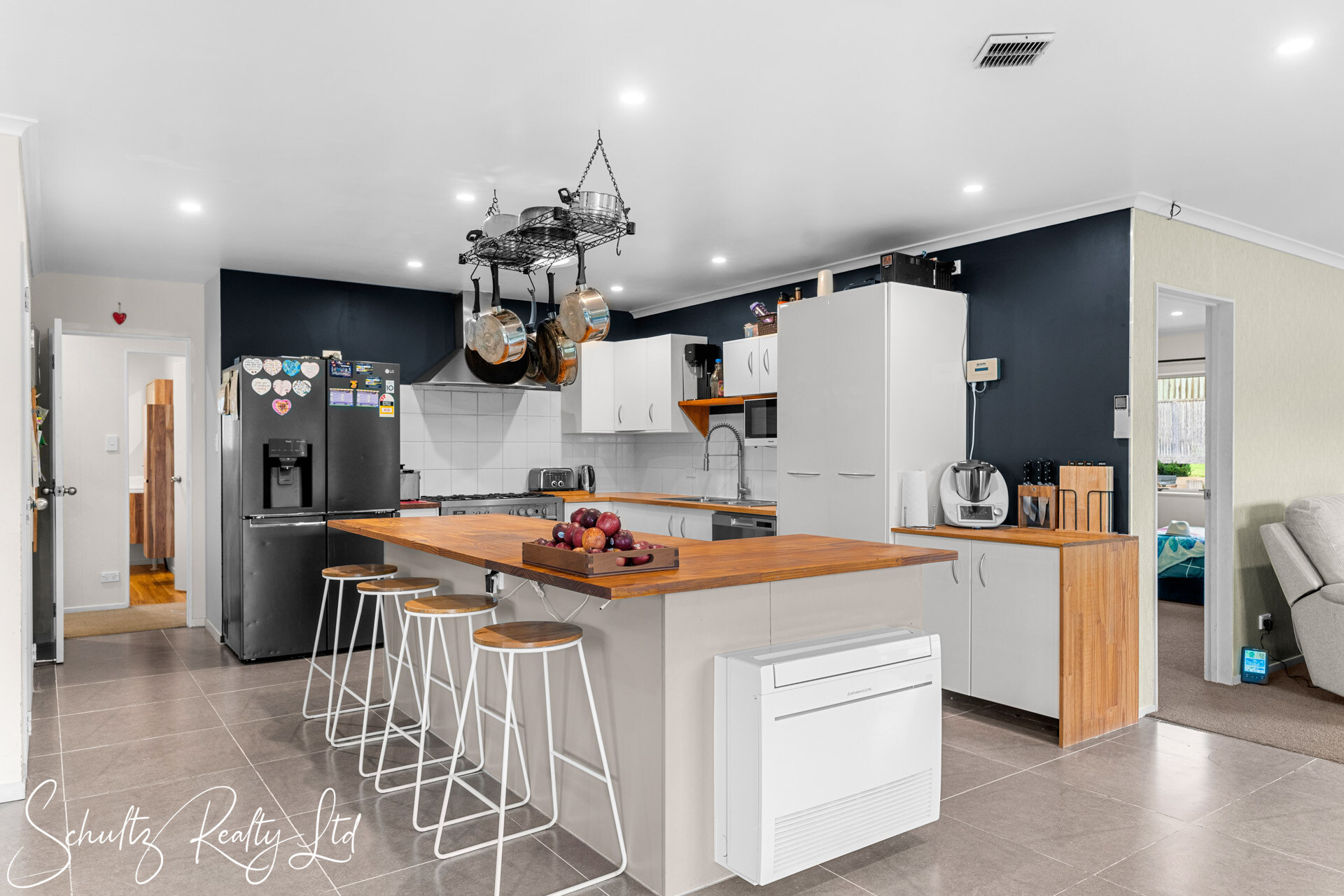 The heart of the home is a bright and inviting open-plan living, dining, and kitchen area. Featuring fresh wallpaper, a skylight that gives extra natural light, and the cosy comforts of both a wood burner and heat pump, it seamlessly flows out to the sun-drenched deck-perfect for summer BBQs and family get-togethers. The modern kitchen will impress the home chef, with a large island bench, massive electric oven, and gas cooktop. The expansive dining area is flooded with light and ideal for hosting, while the spacious lounge welcomes relaxation for all the family.