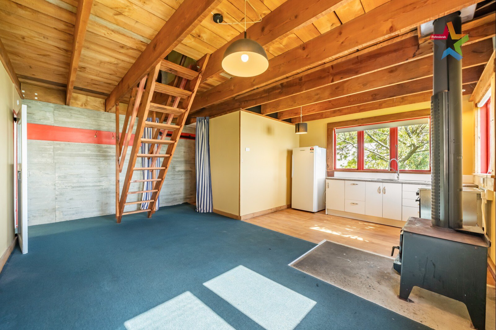 With a simple floor-plan, the layout makes for a very cosy home which includes a wood burner. This home stands out from traditional options as it includes a cosy bedroom, a versatile office/studio space up in the loft (perfect for those who work from home or wish to explore their creative passions) as well, open plan living (kitchen/dining and lounge). It also includes a car park for one vehicle.