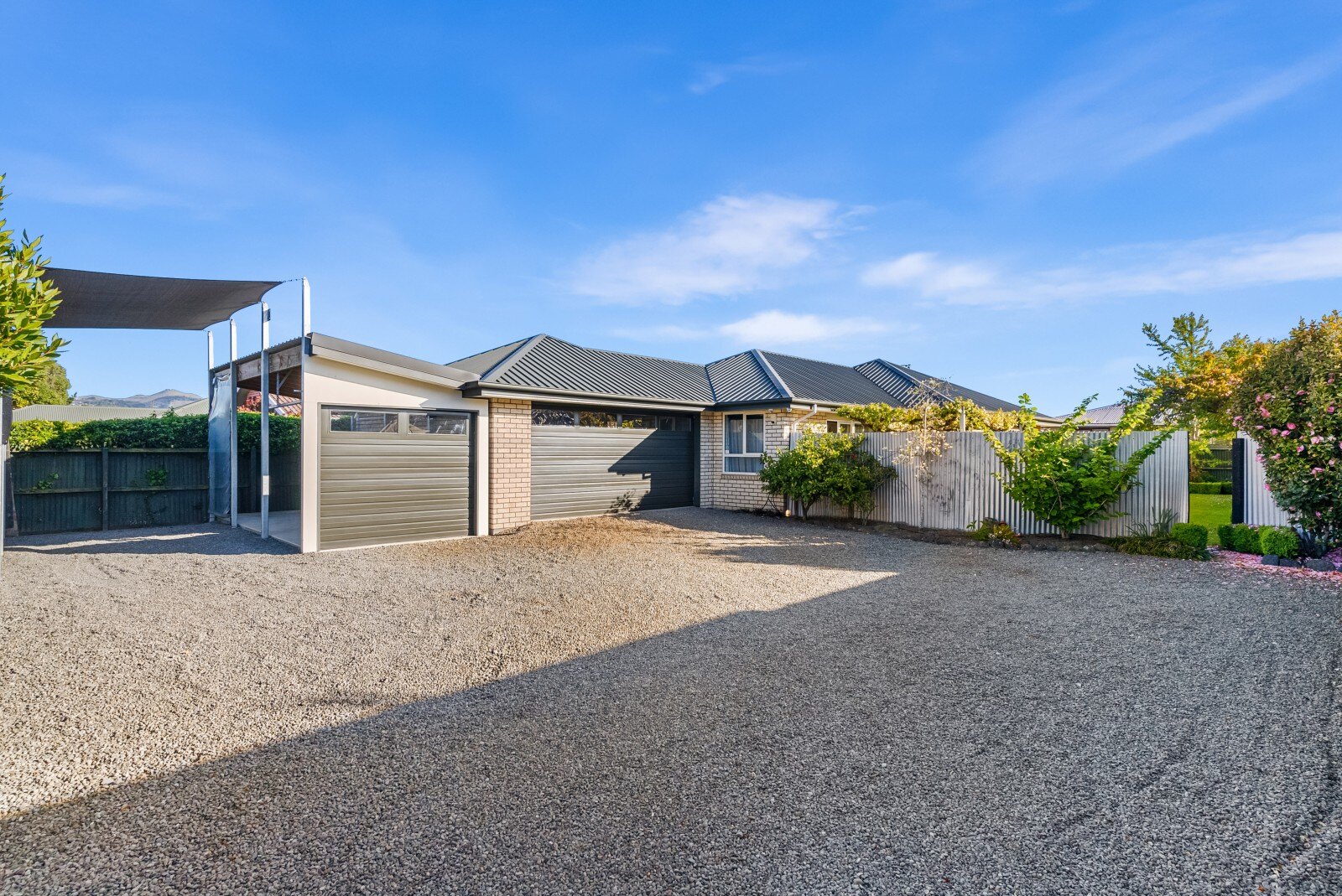 Double internal access garage, plus two carports, including one with campervan height