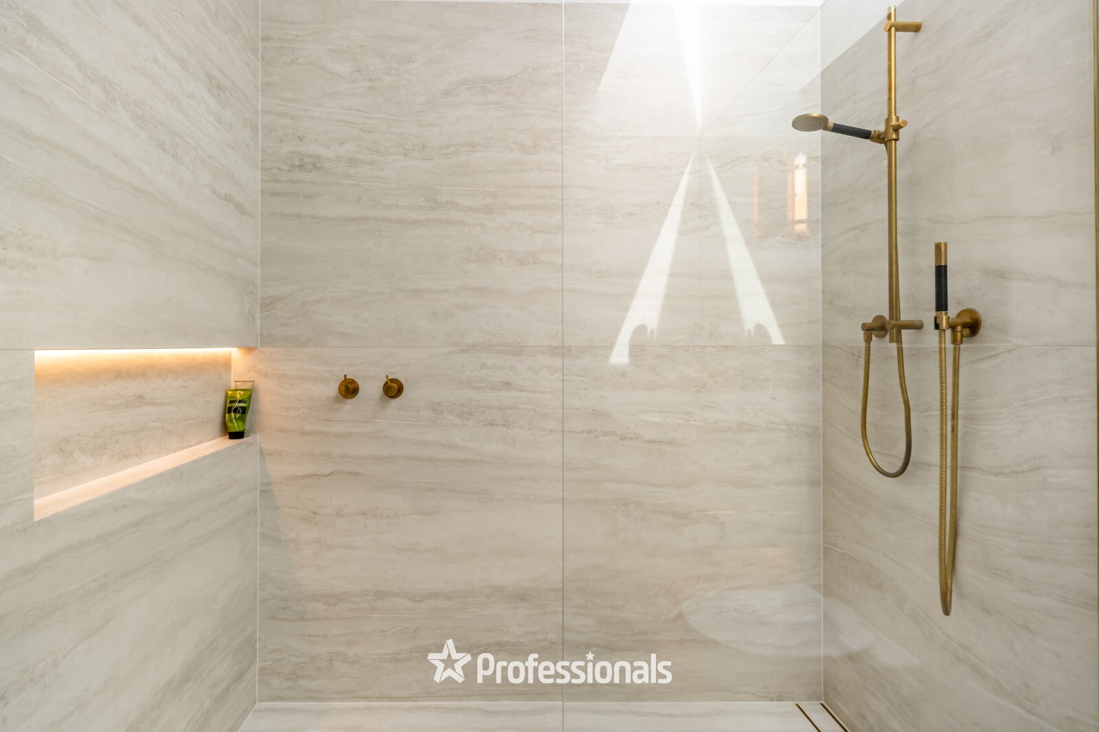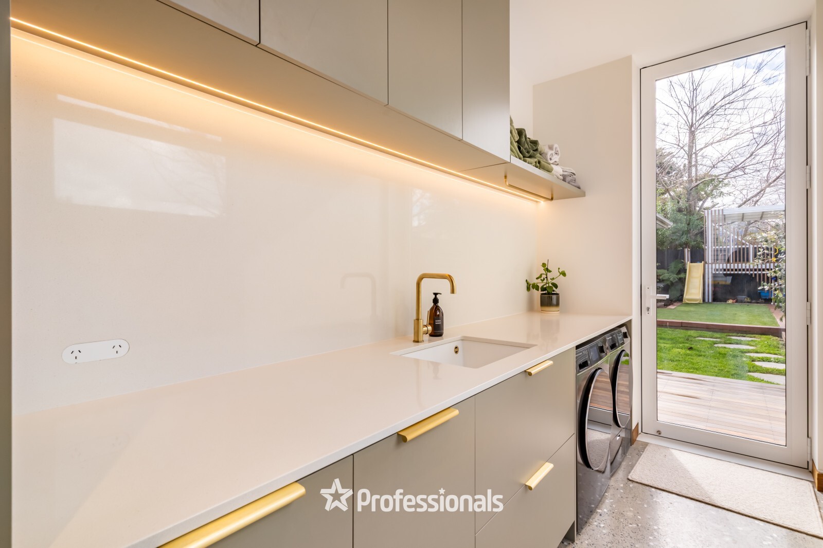 But the real showstopper? The striking rear extension - a sun-drenched, open-plan living zone that will take your breath away. The designer kitchen is a true centrepiece: featuring European smoked oak cabinetry, Italian Arabescato Grigio marble benchtops, Fisher & Paykel integrated appliances, and solid brass detailing, all under the glow of Parisian hand blown pendant lighting. The polished concrete floors (with underfloor heating, of course) add a modern edge, while full-height sliding doors open seamlessly to the outdoor entertaining zone.