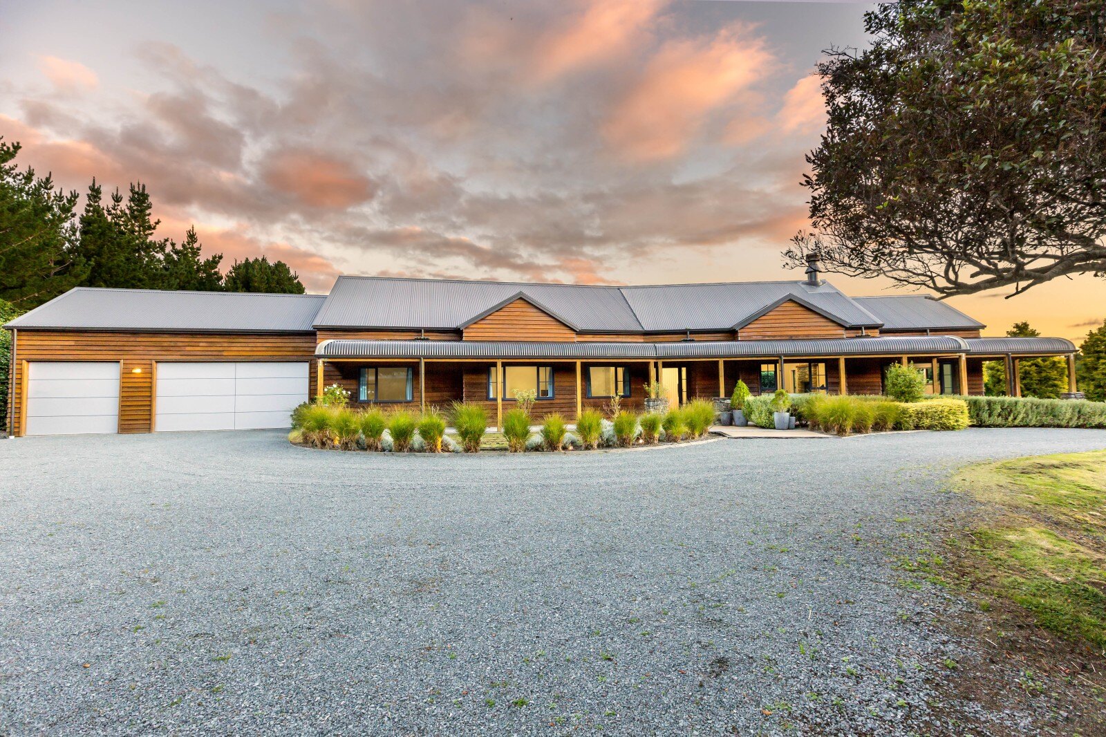 32E Kaitoke Loop is a stunning home built with quality materials, designed for practical living whilst showcasing an architectural flair, and is a 306m2 building master class. From the cedar weatherboard cladding and wrap around bull nose veranda to the high stud throughout which climaxes in the living area with a chapel ceiling featuring beautiful, exposed timber beams and a hand crafted river stone fire place, this stunning home oozes class.