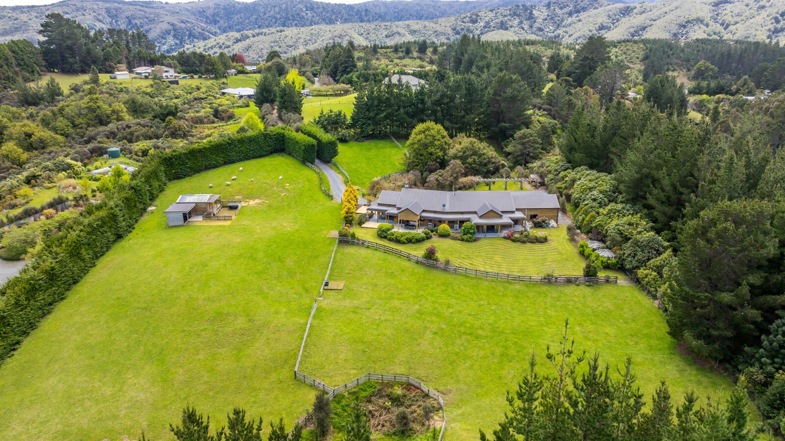 What's truly special about this outstanding home is the setting and unique land parcel. It's the perfect size for a couple of pony's or sheep but not big enough that it will consume your weekends. The four well fenced paddocks have piped water troughs, stables and large tack shed complete with a warm outdoor shower.