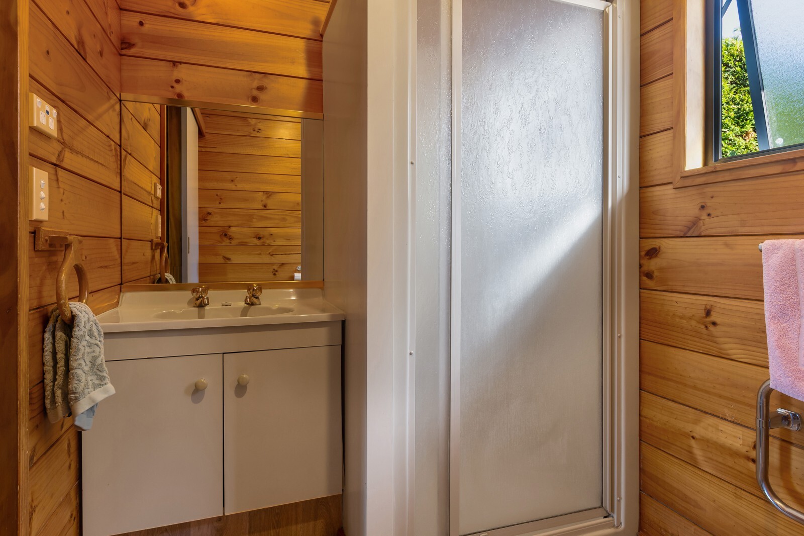 The upper-level, 4 Bedroom/2 Bathroom Lockwood Home is spacious and modern with interior living spaces opening out to a seaward facing deck that runs the full width of the building and includes a covered and fully enclosable north-east facing outdoor entertainment space. A very spacious lounge adjoins the outdoor living area and both enjoy sunshine and wonderful views. Three of the four bedrooms are all generous doubles with the master bedroom being larger and including a walk-in wardrobe, ensuite and deck access. The home features warm exposed timber Lockwood walls and lush carpet in living areas and bedrooms.