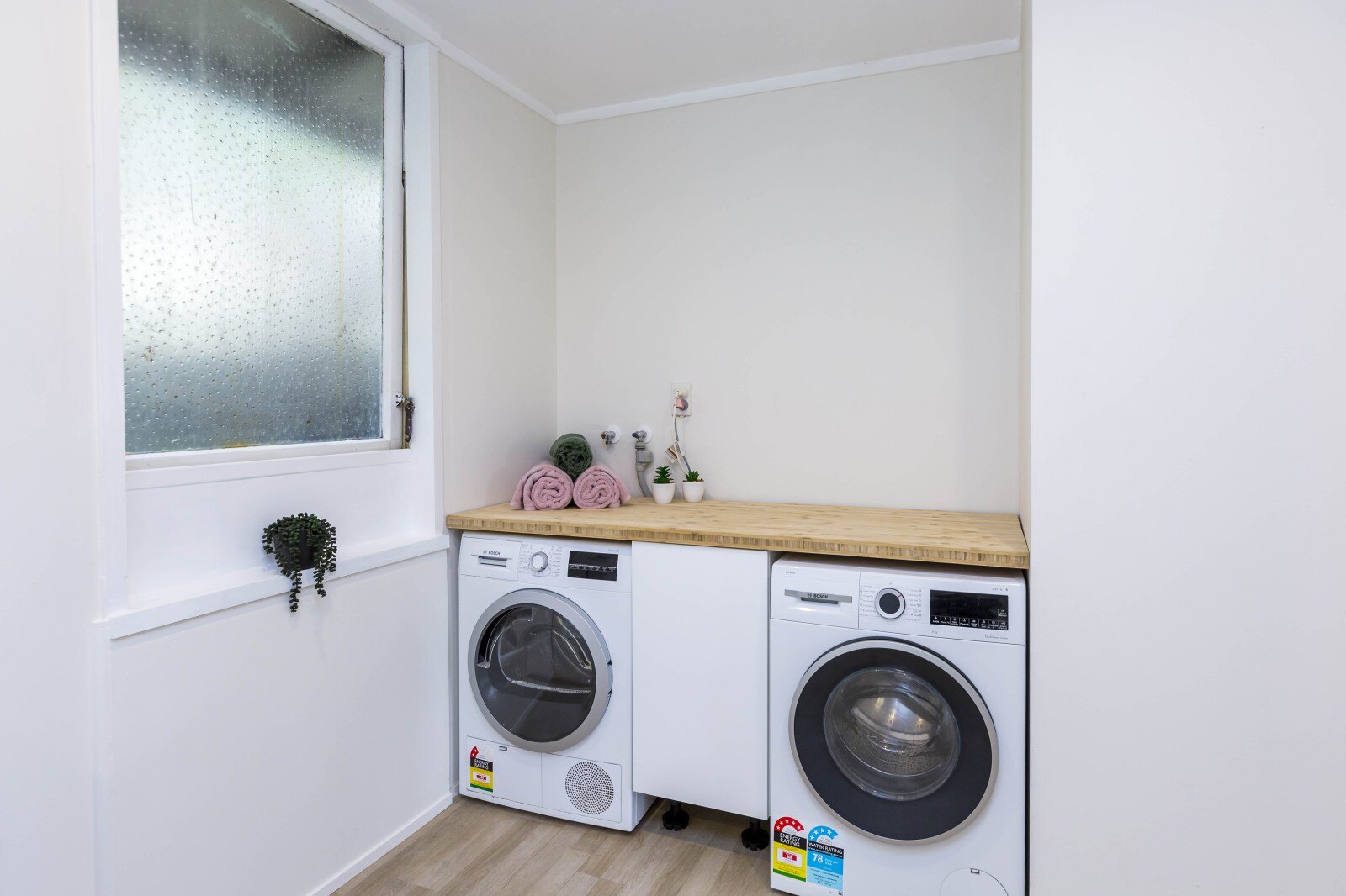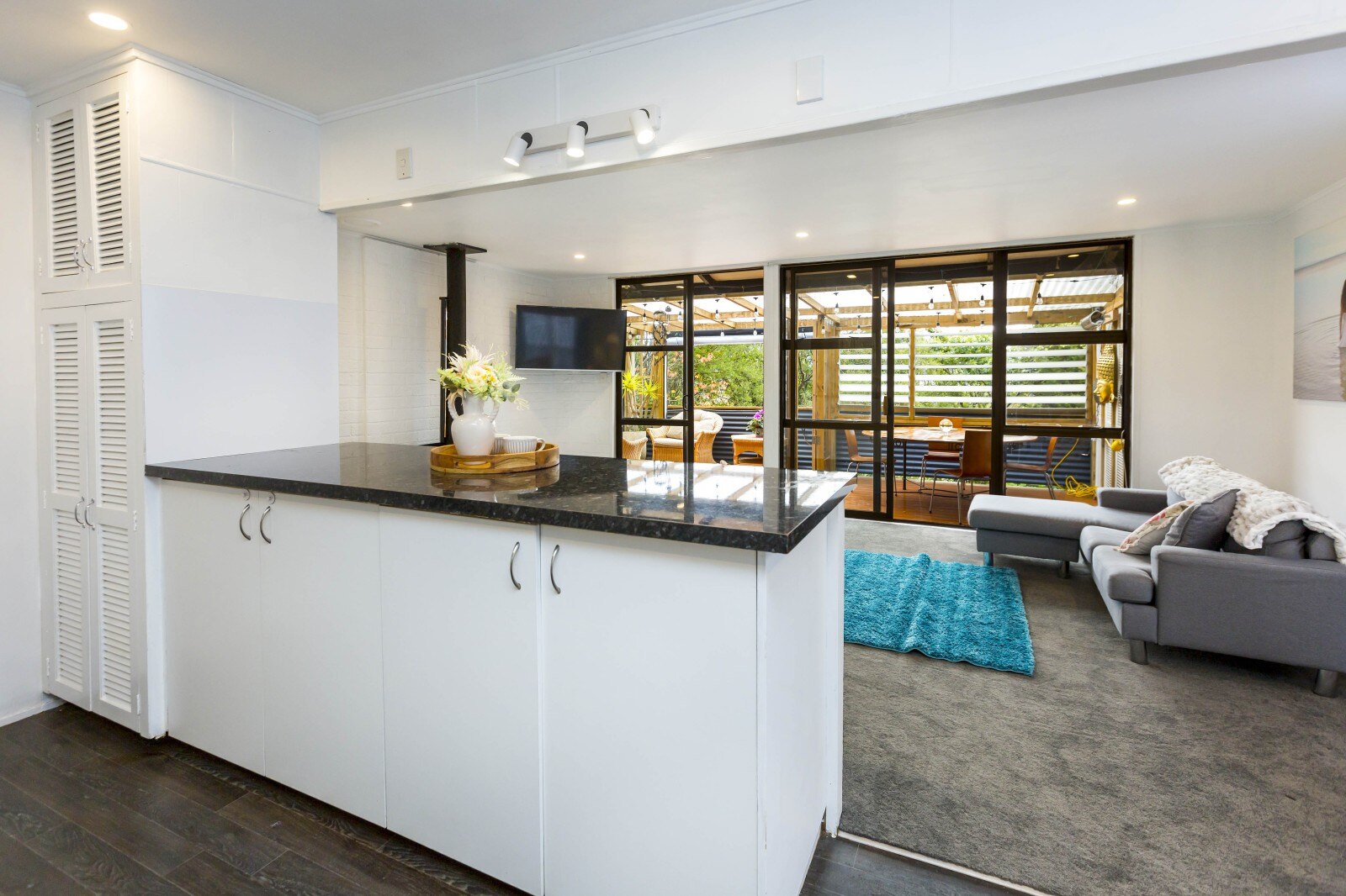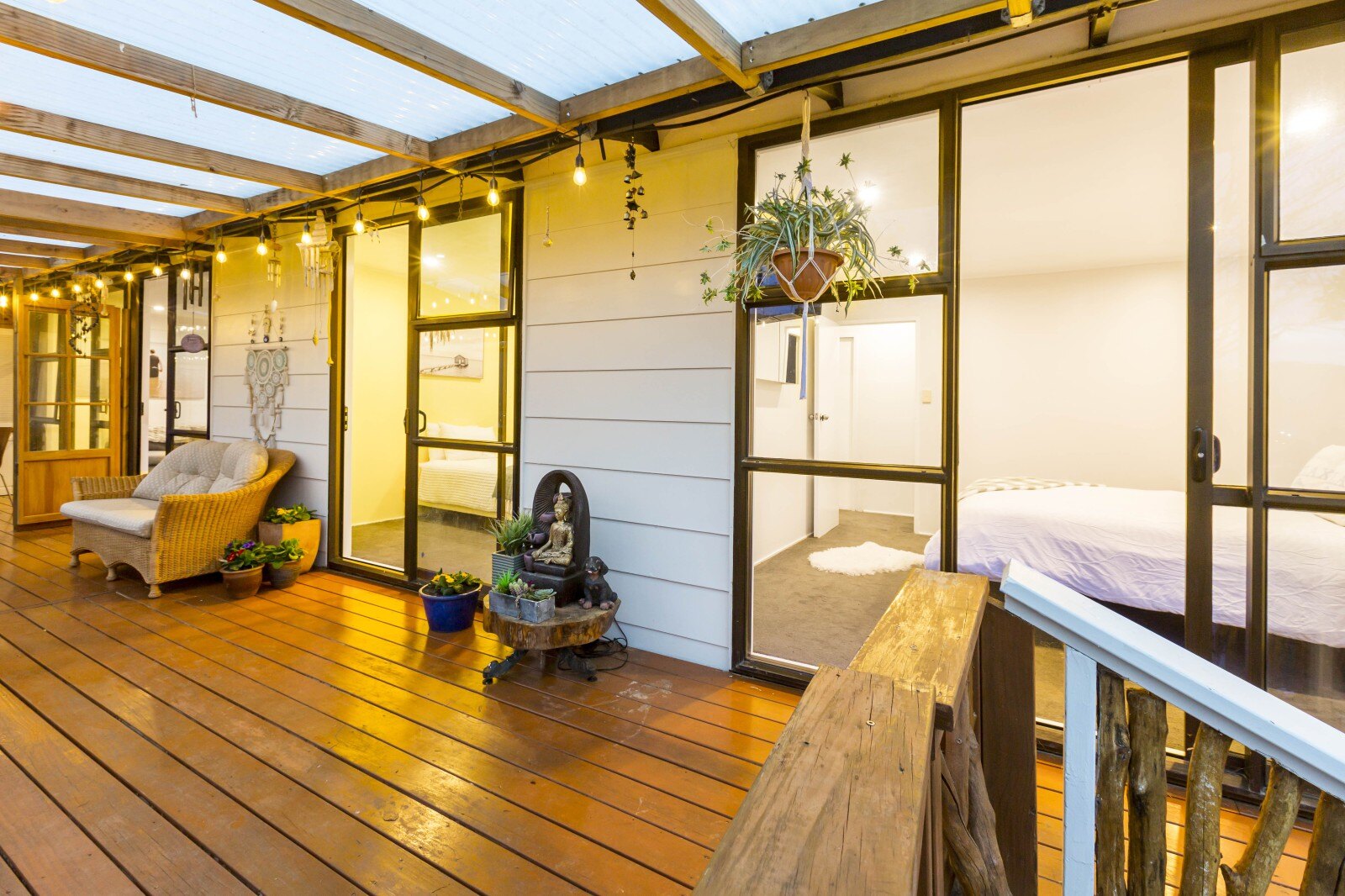 The spacious covered deck significantly expands your usable living area beyond the home's 100m2 interior and is perfect for all-weather outdoor living. Fitted with transparent blinds, you can enjoy the outdoors rain or shine.