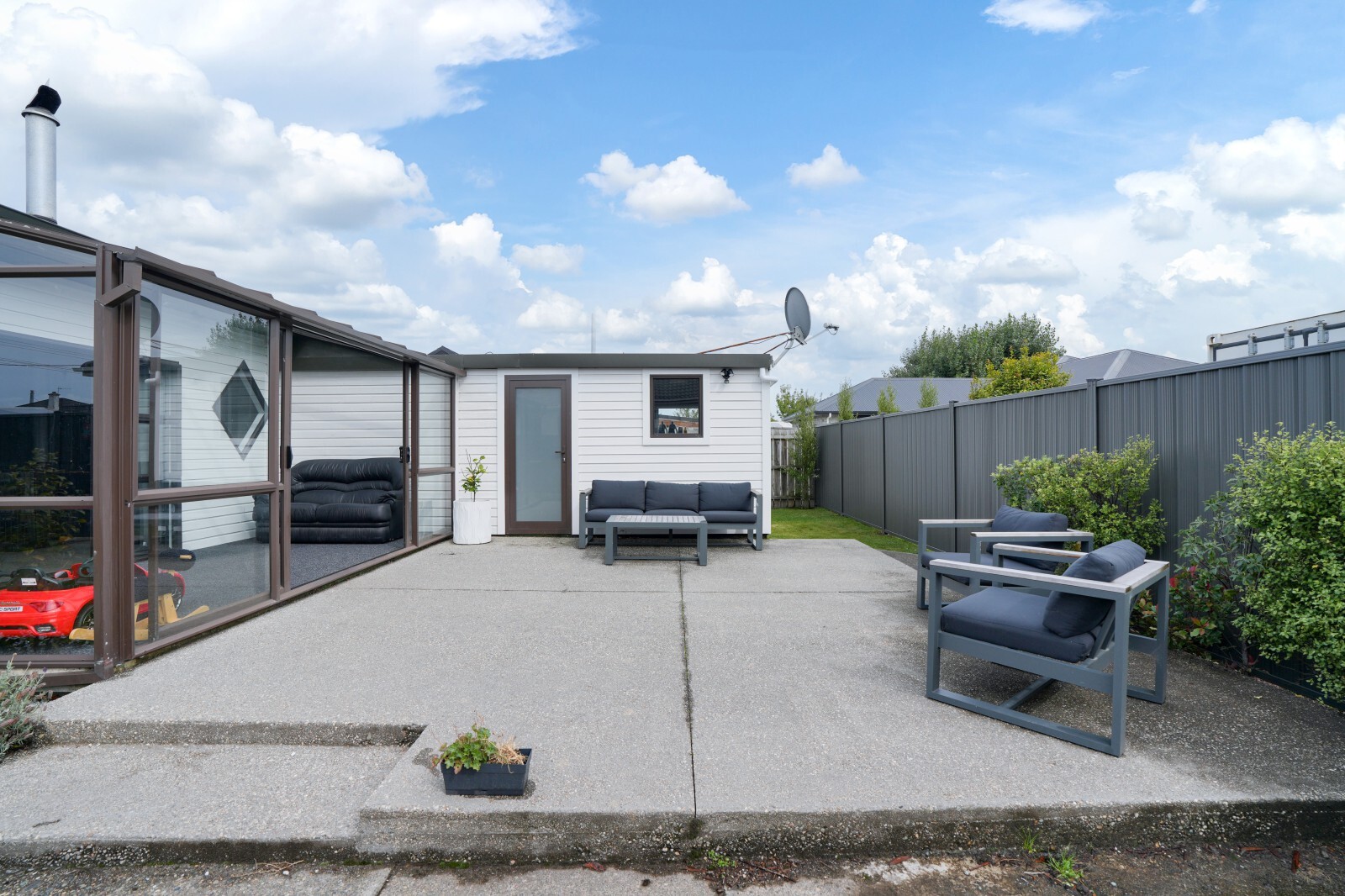 Three well-proportioned bedrooms, separate office space, majority double glazing, fresh exterior paint, easy-care, low-maintenance section